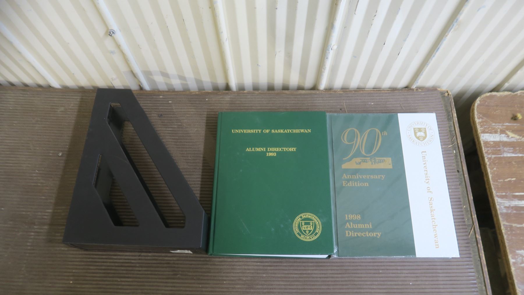 university of saskatchewan 1993 alumni directory & university of saskatchewan 1998 alumni directory *unopened* and a book holder