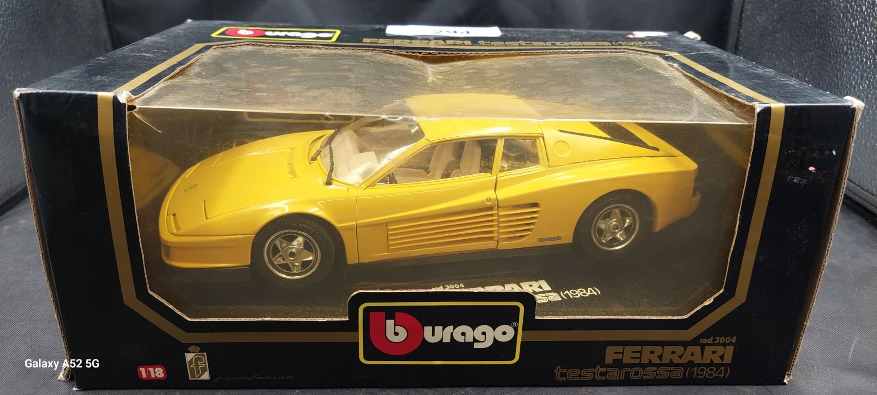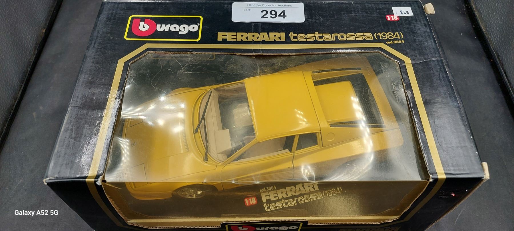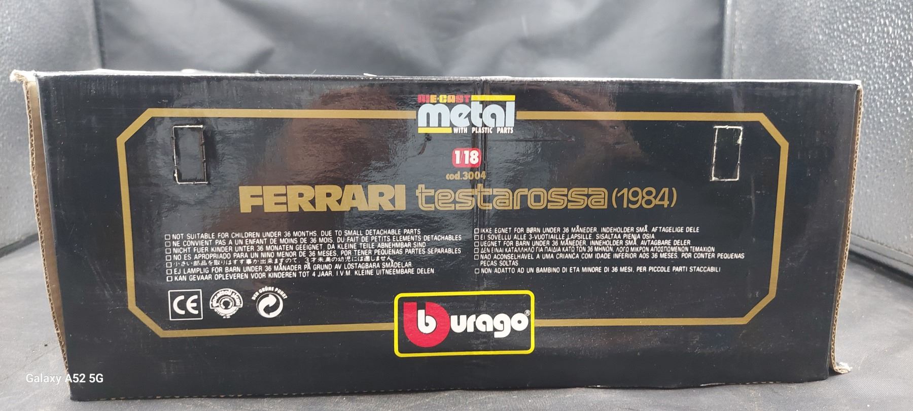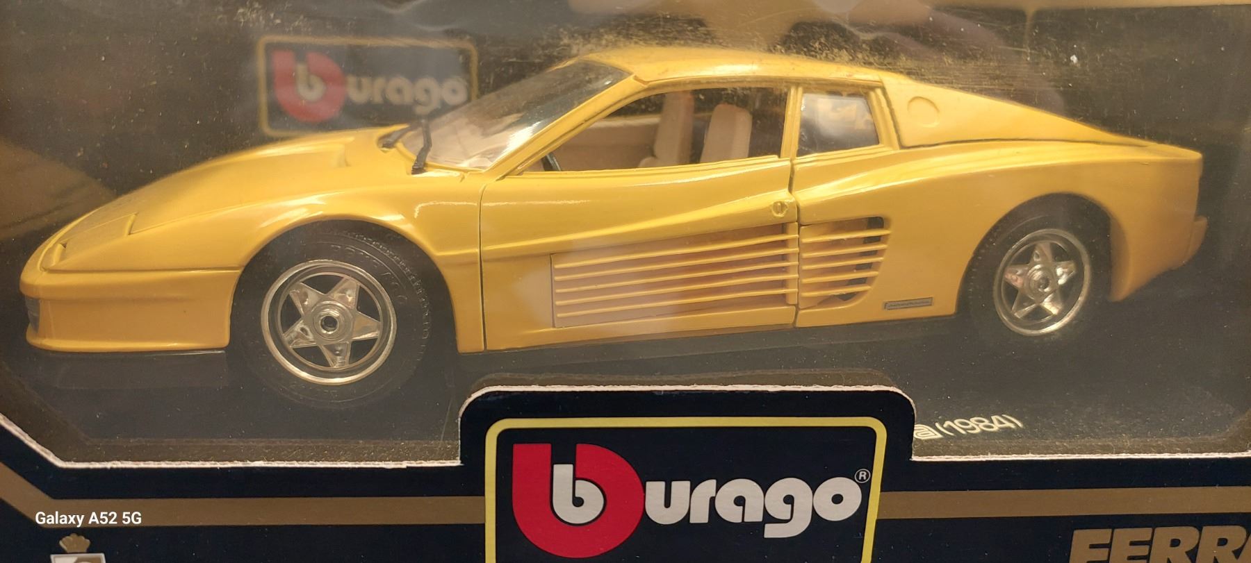 unopened package of 1984 farrari Testarossa 1:18 scale die cast