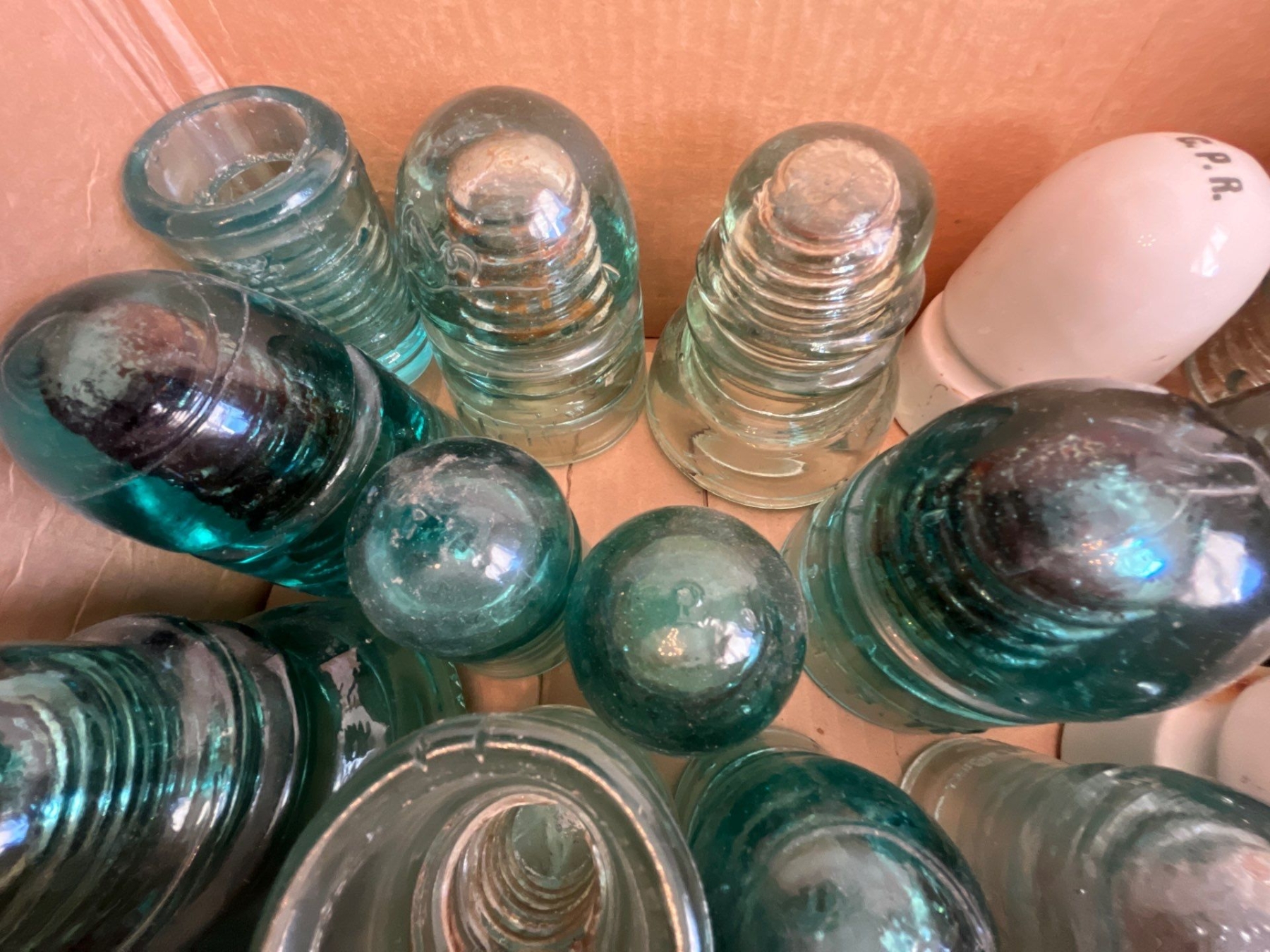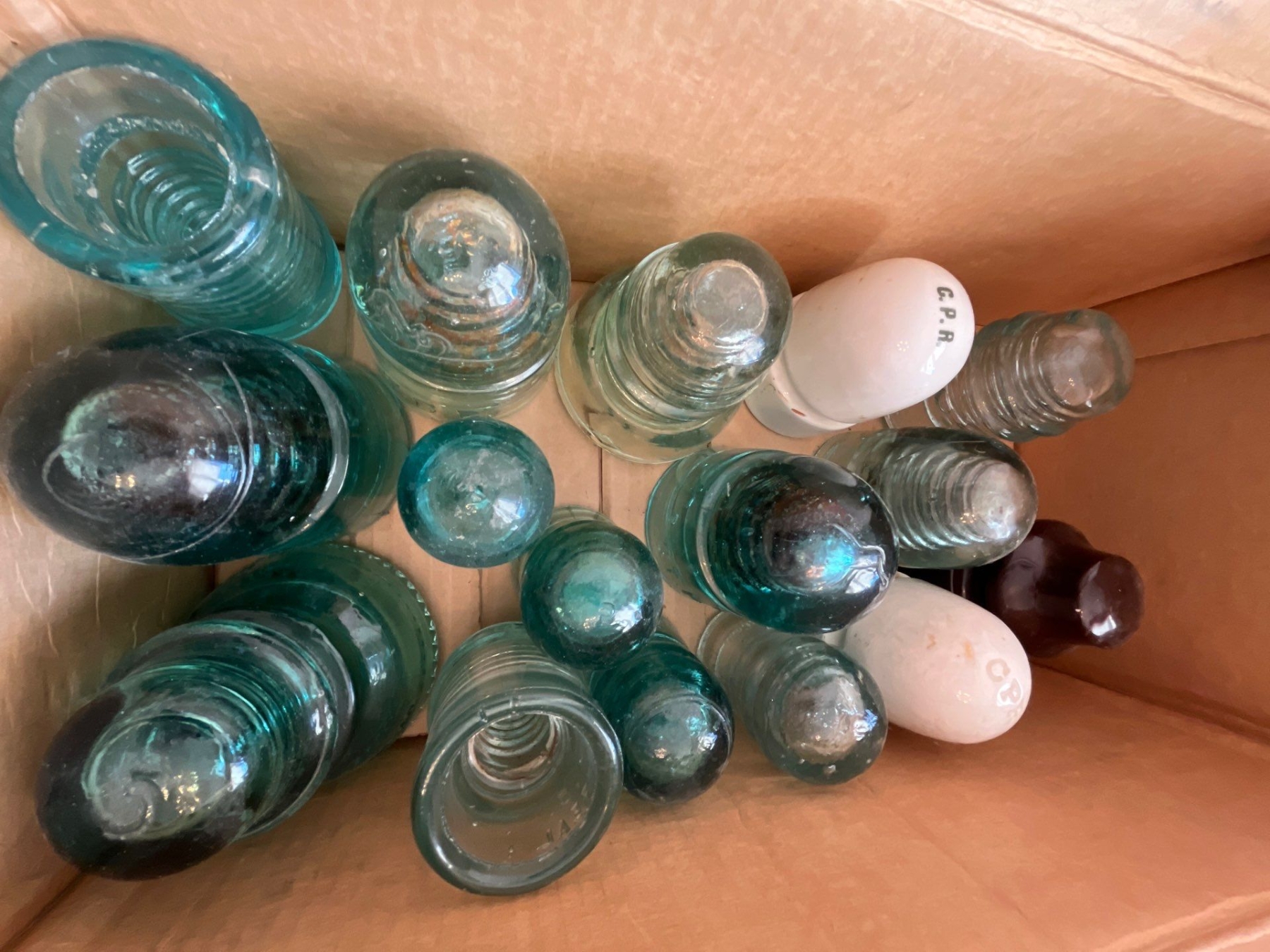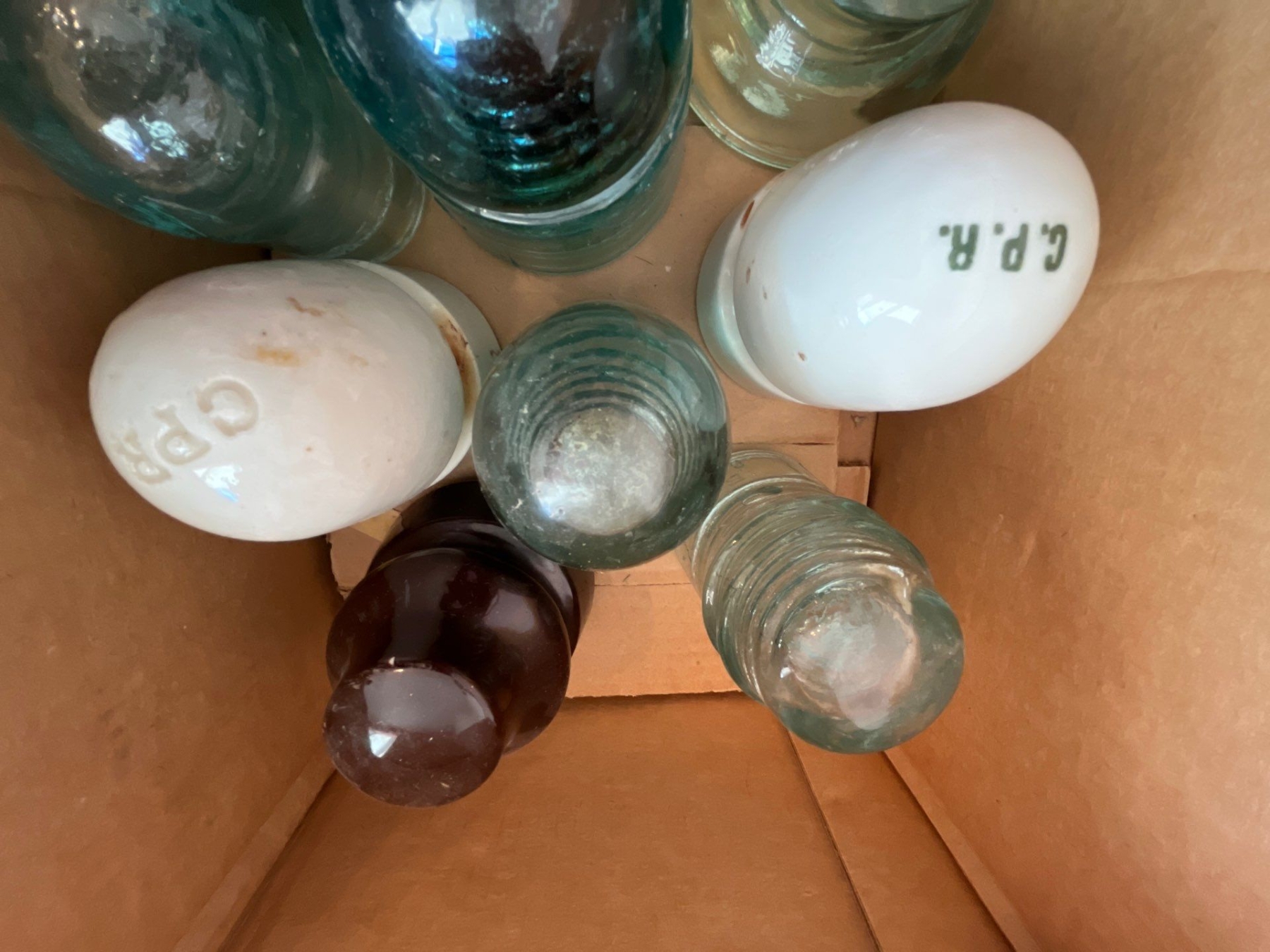 variety pack of glass, antique insulators, all sizes, colors and material some glass and some are ceramic