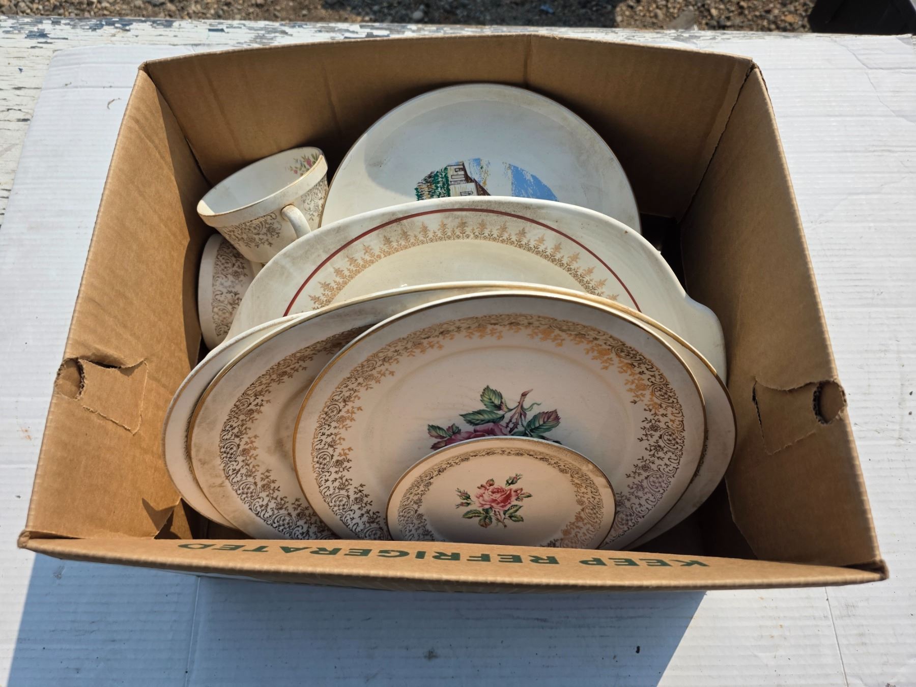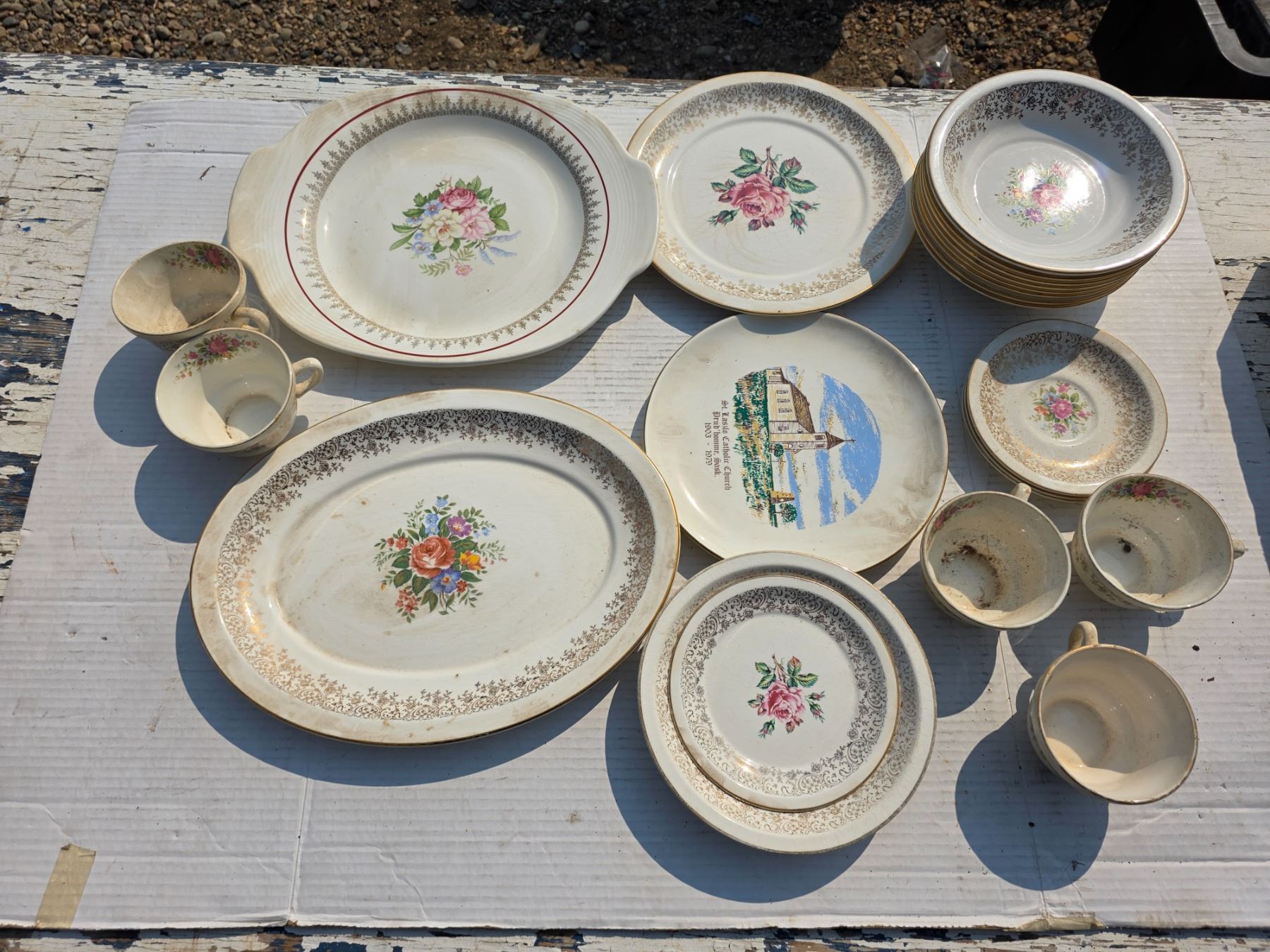various chinaware= plates cups