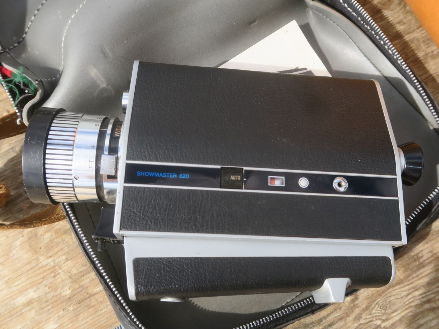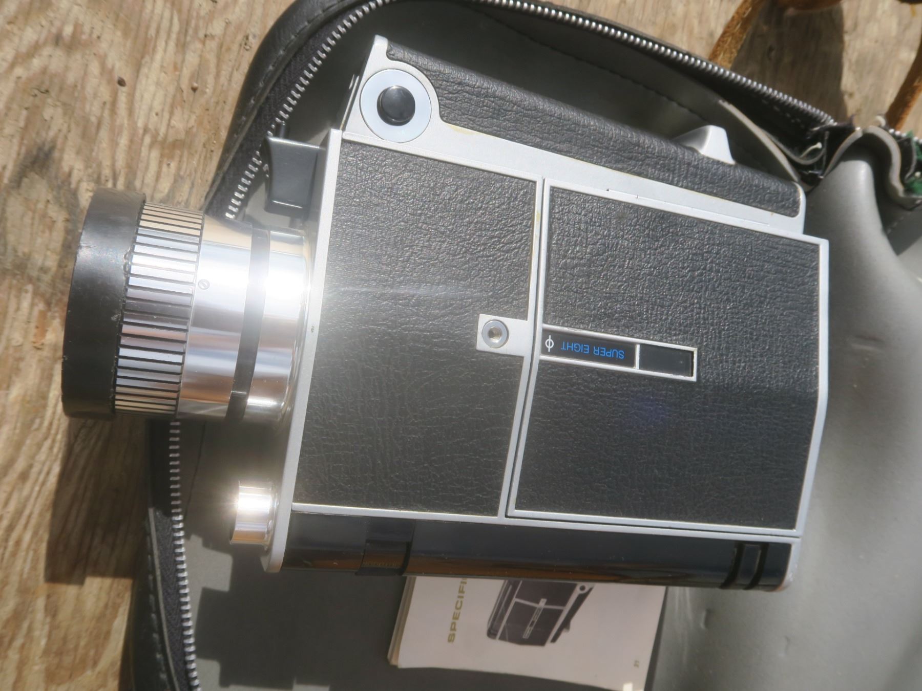 vintage Argus Super 8 movie camera with bag, owners manual and movie lights