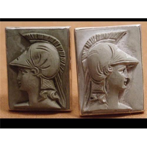 Besides being spectacular and having beautiful detailing on the faces these are large ( 1" tall x 7/8" wide) and set in 800 silver ( marked on each). Each face is different and the Roman or Greek soldiers are in high relief. The silver settings are in excellent condition and really well made and they look as if they have never been worn. The cameos are in very good condition with one being a bit lighter than the other. What a fantastic gift these would make because they certainly are one in a million. Definitely for the high end collector.