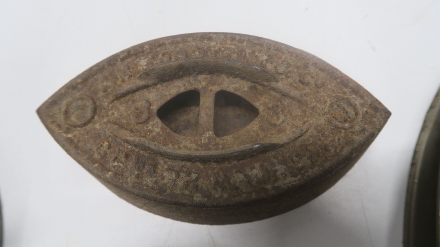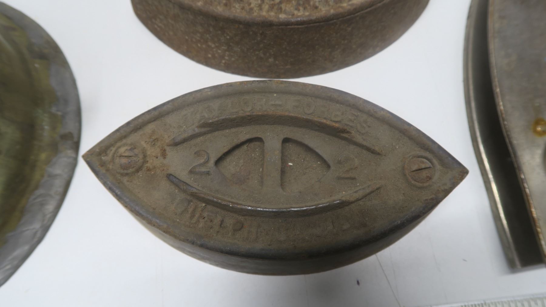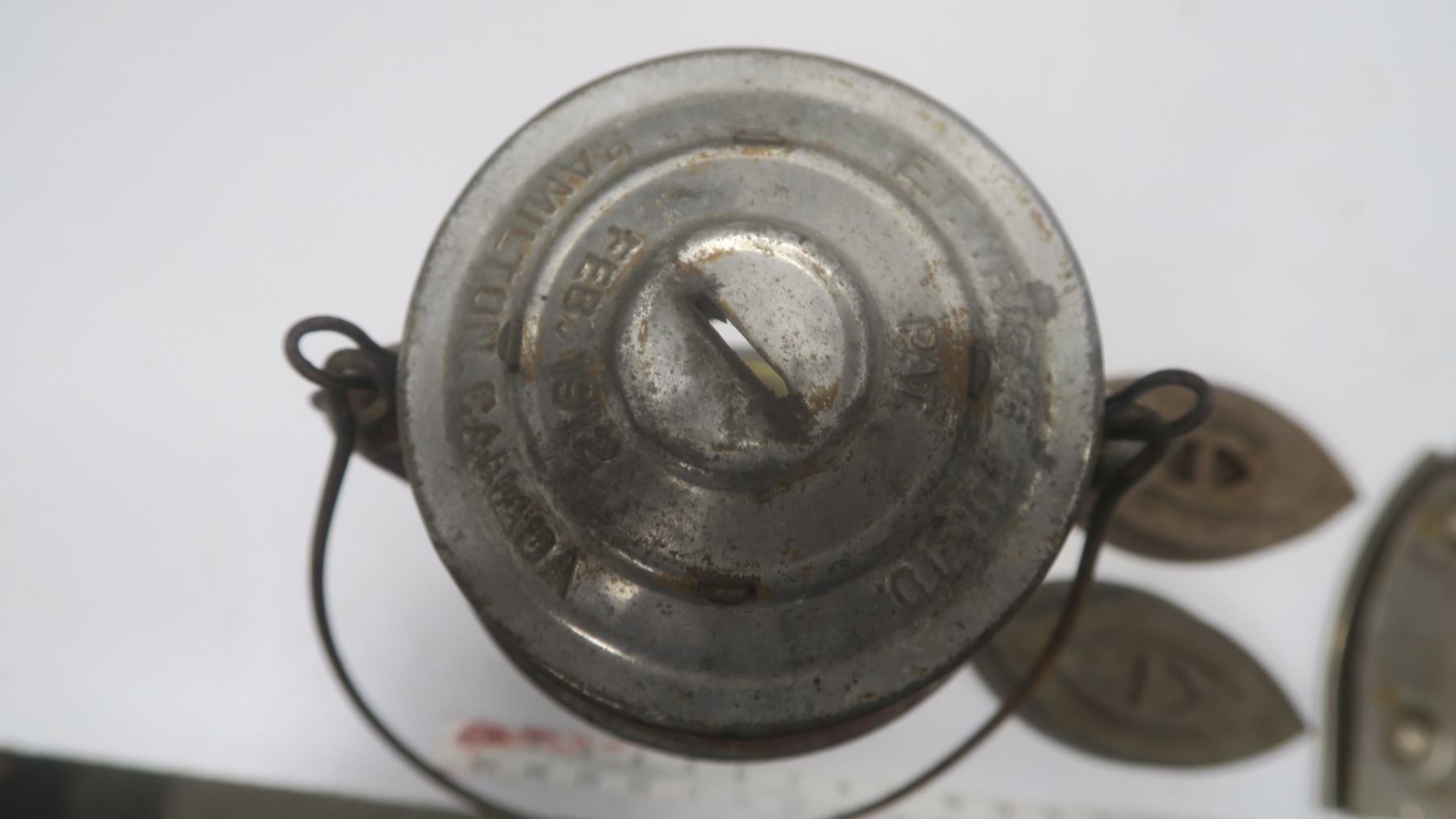 vintage Wright & Co. lamp (no globe), 2 sad irons and iron rest