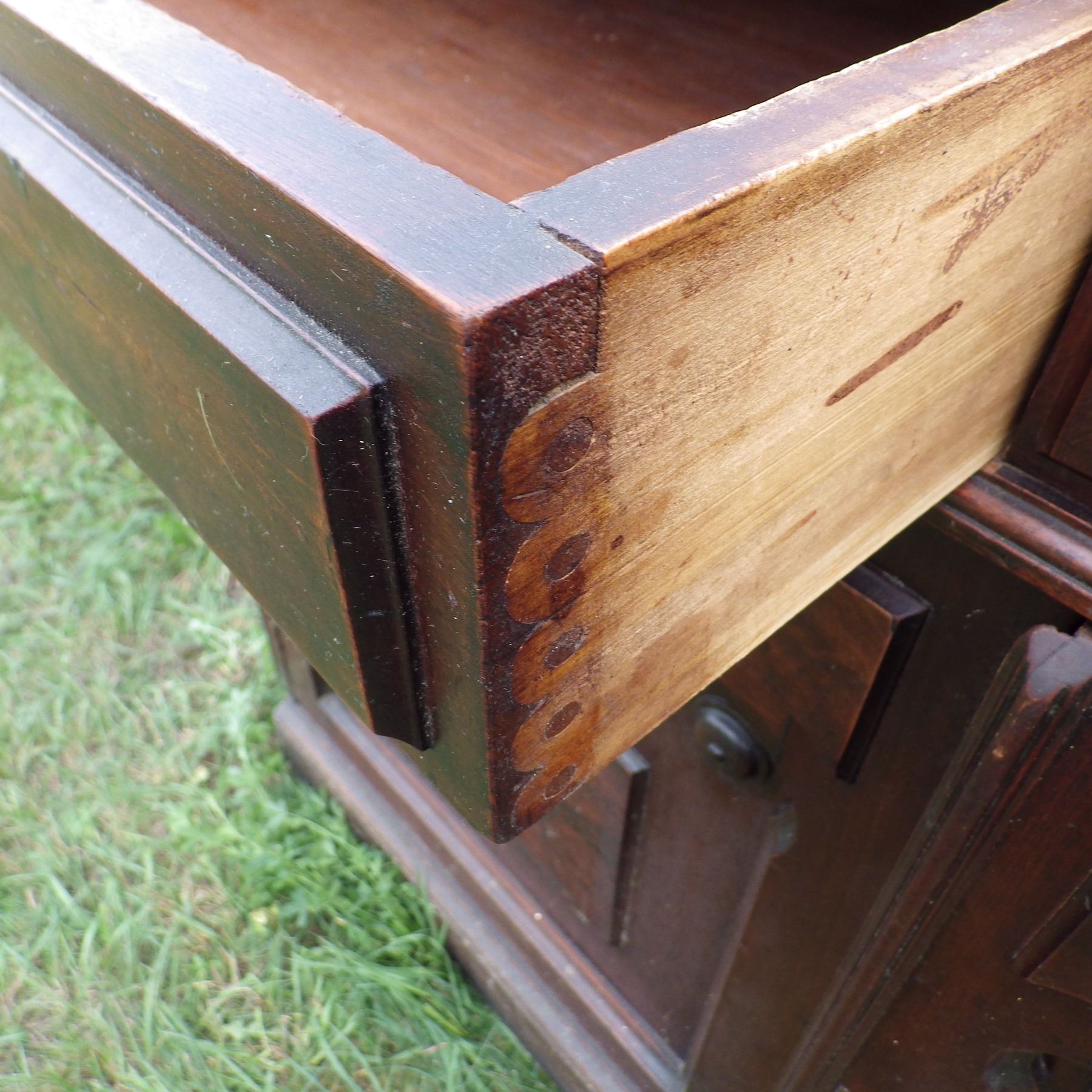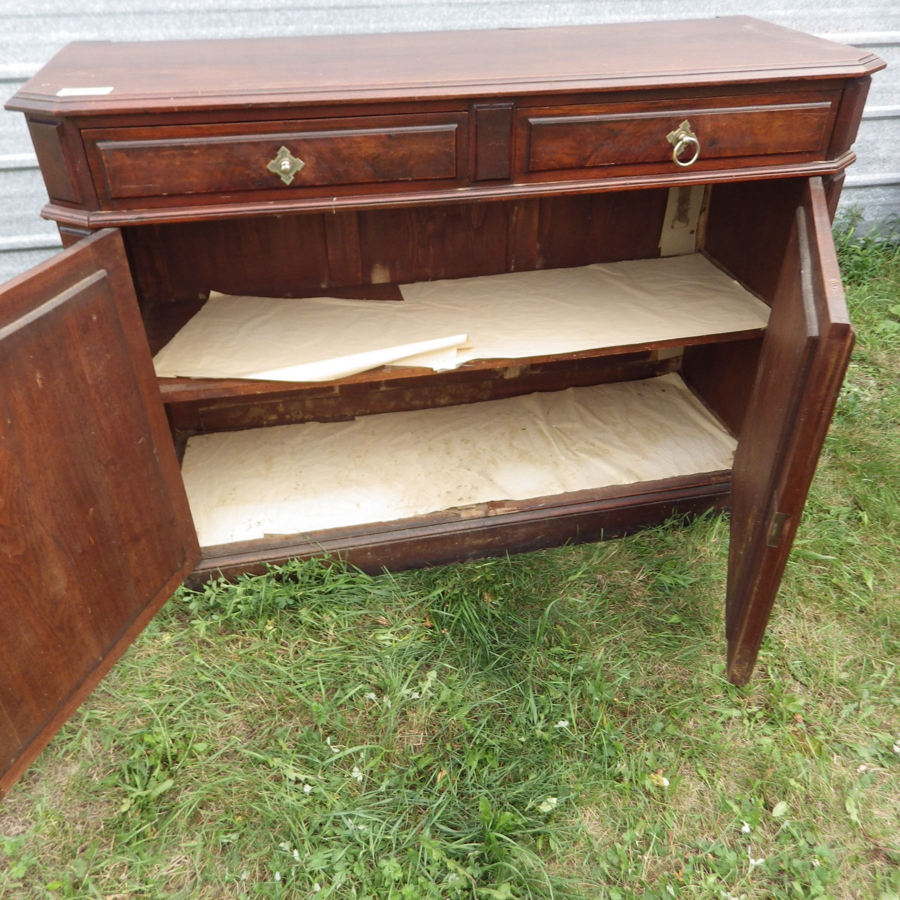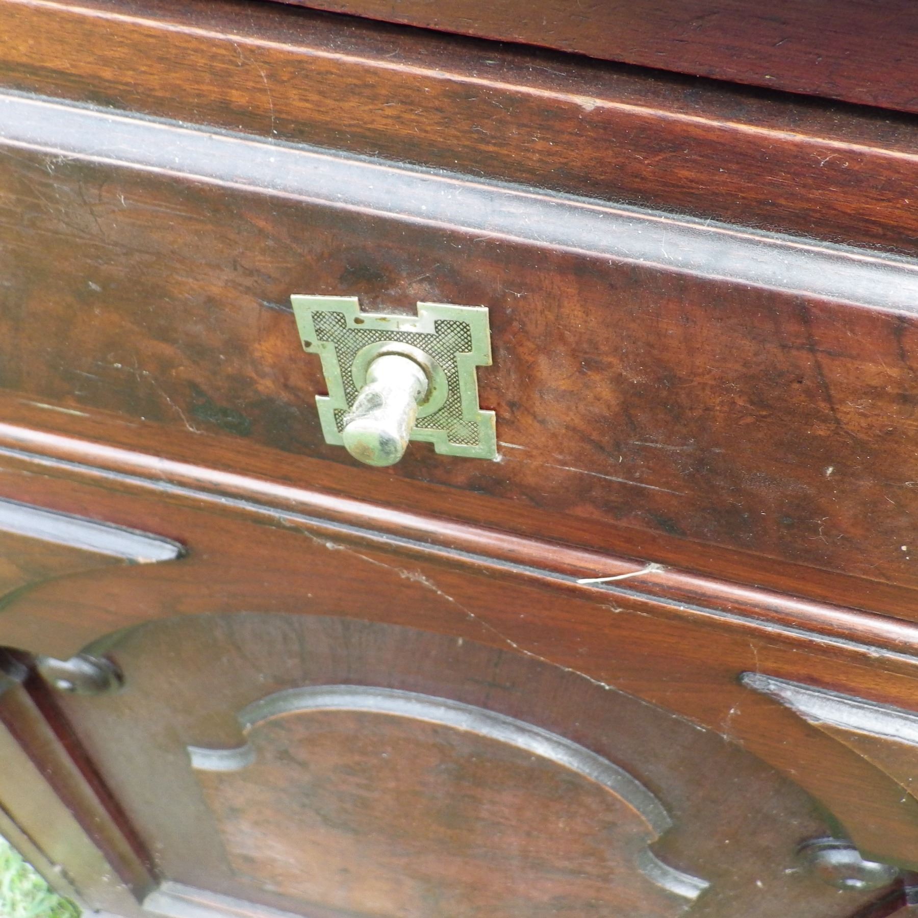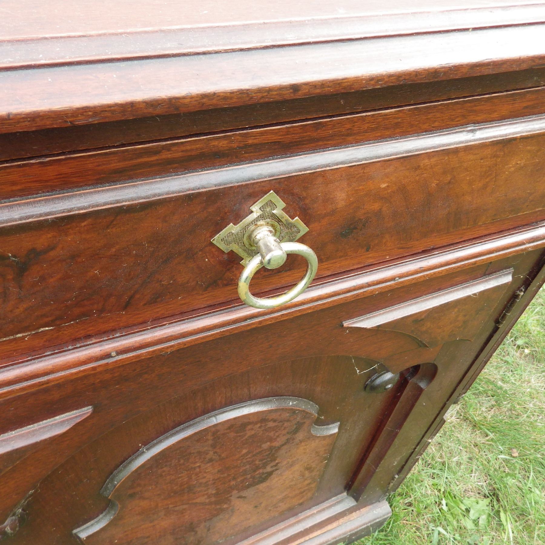vintage buffet one handle pull damaged and some Trim pieces missing