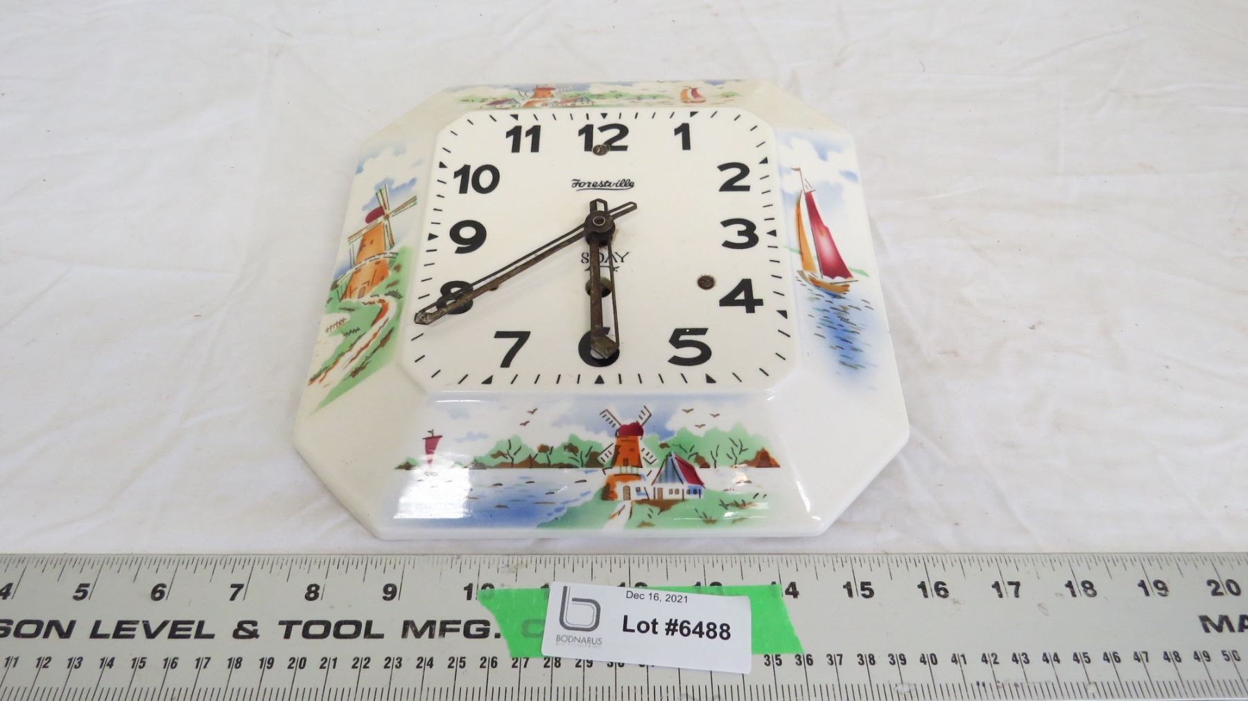 vintage forestville 8 day ceramic wind up clock - with key (working)