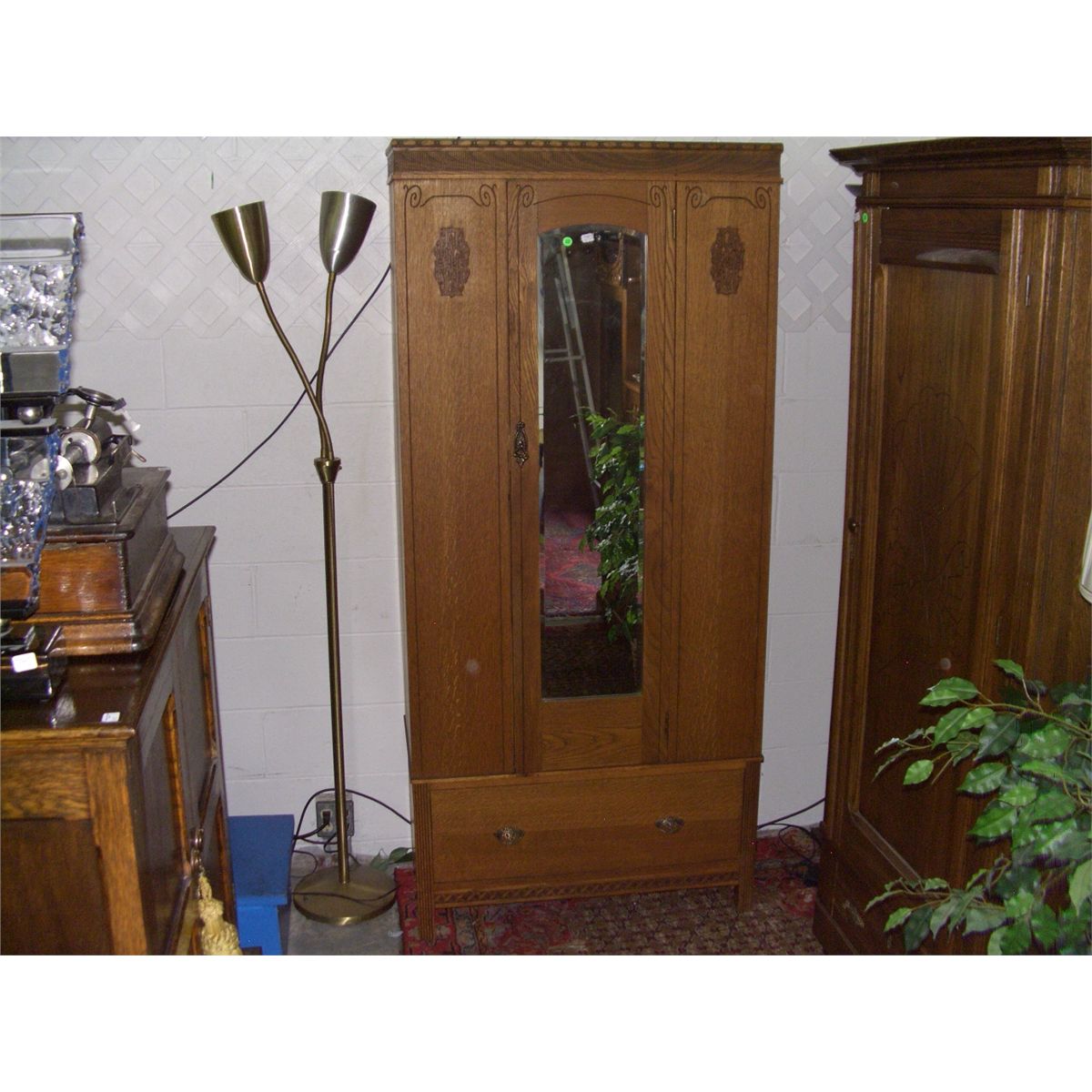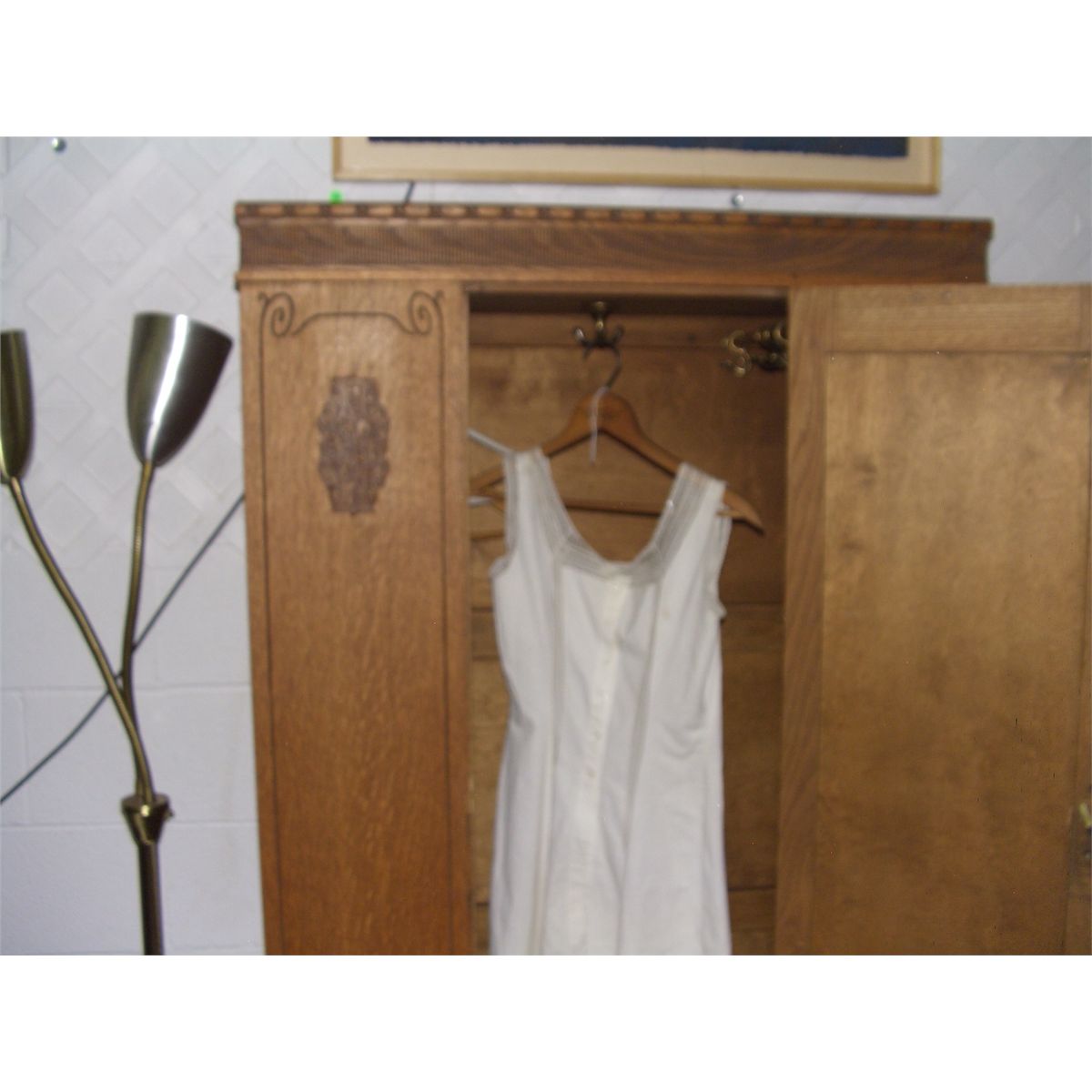 vintage oak carved single door wardrobe, with drawer, SSR 75 1/2