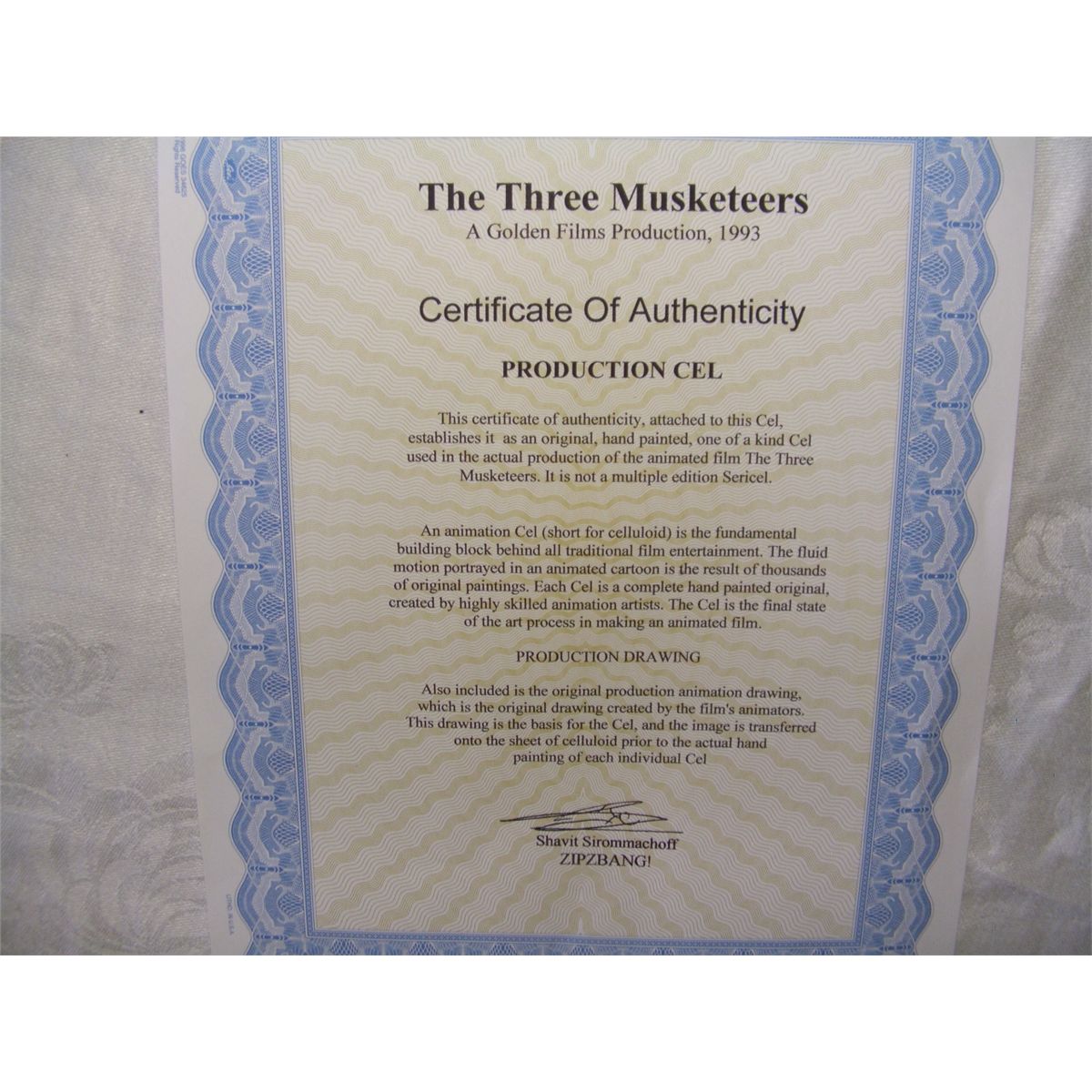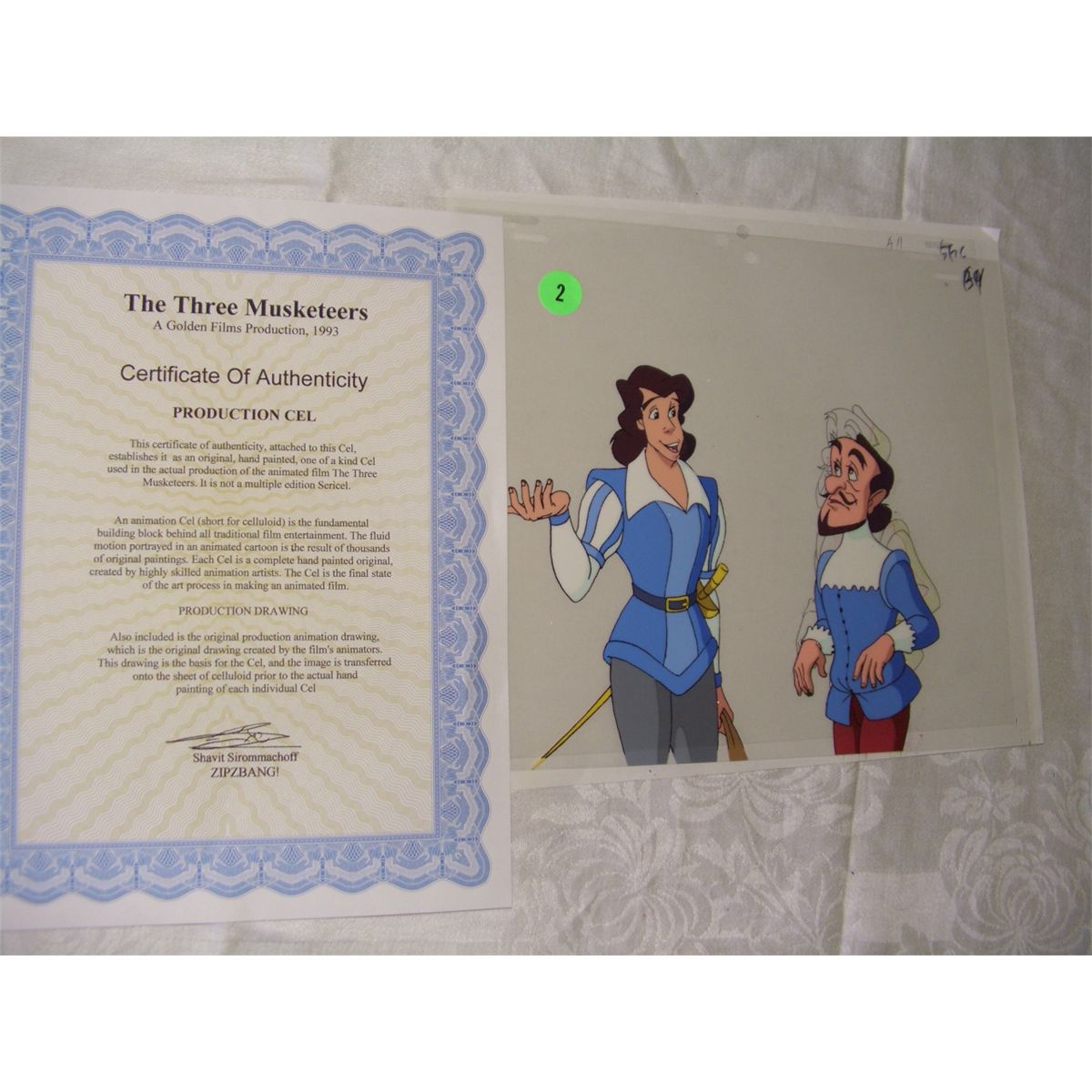 vintage original cartoon cel with cert of auth (COA) and under drawing, The three Musketeers