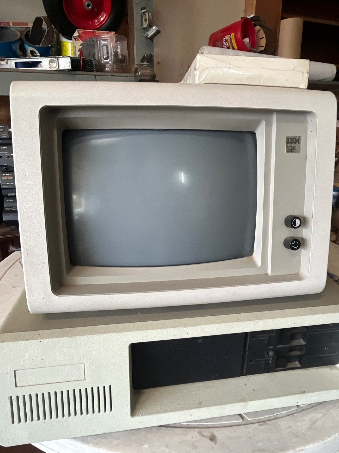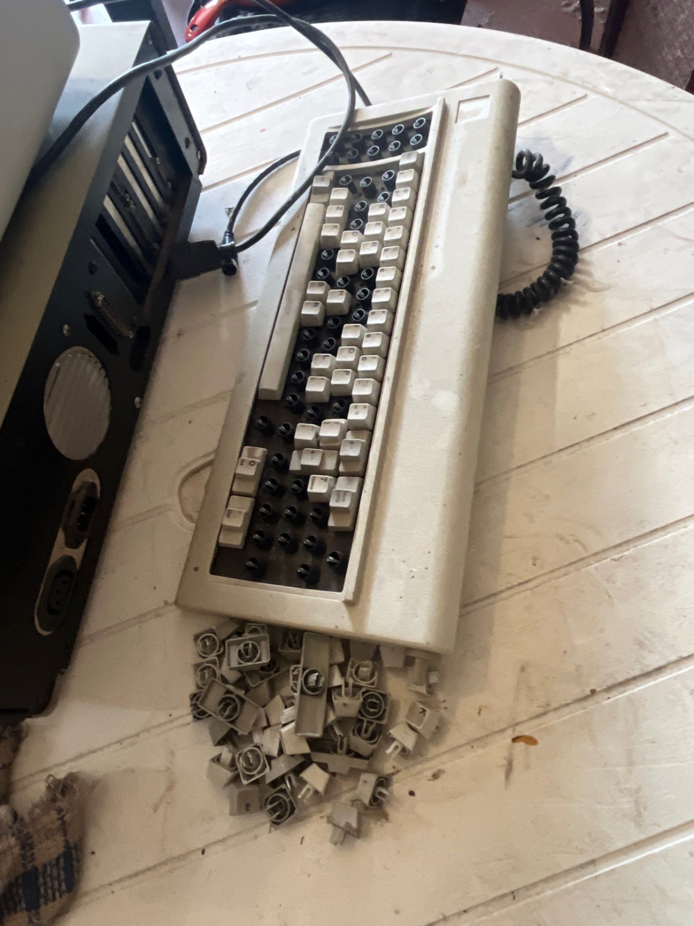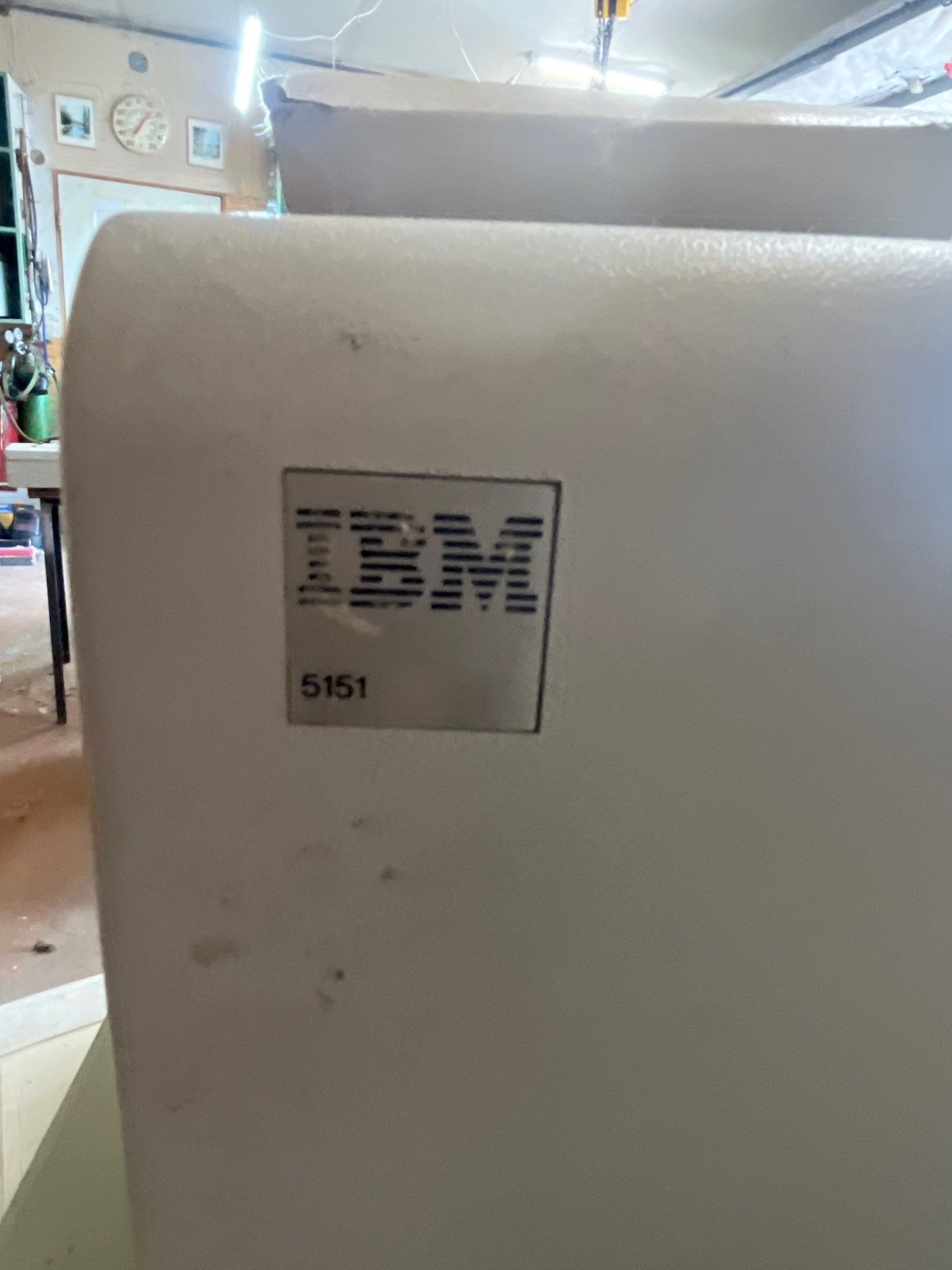 vintage/retro IBM computer with monitor and keyboard keyboard has all the keys they just need to be put back on