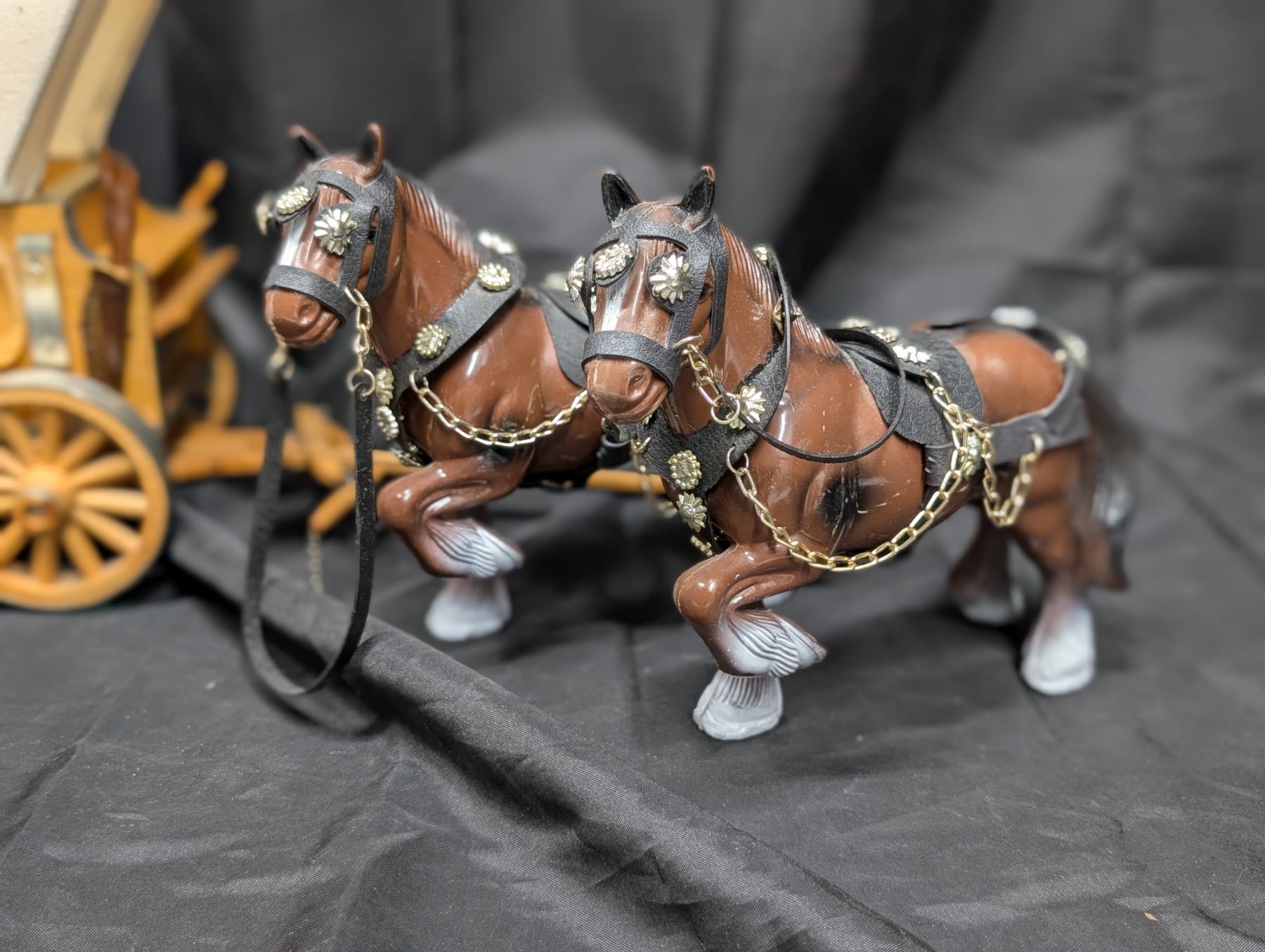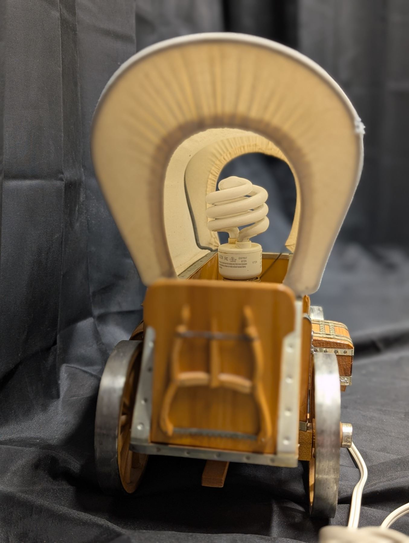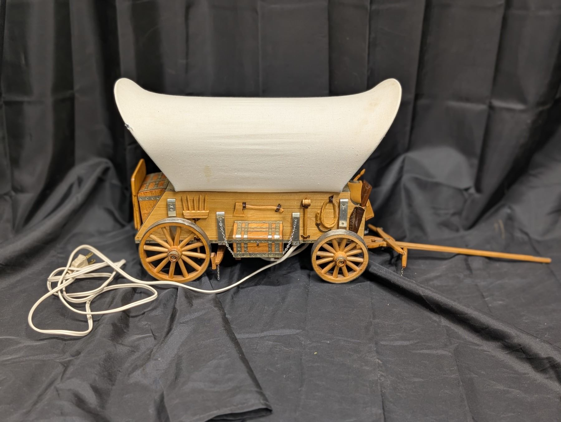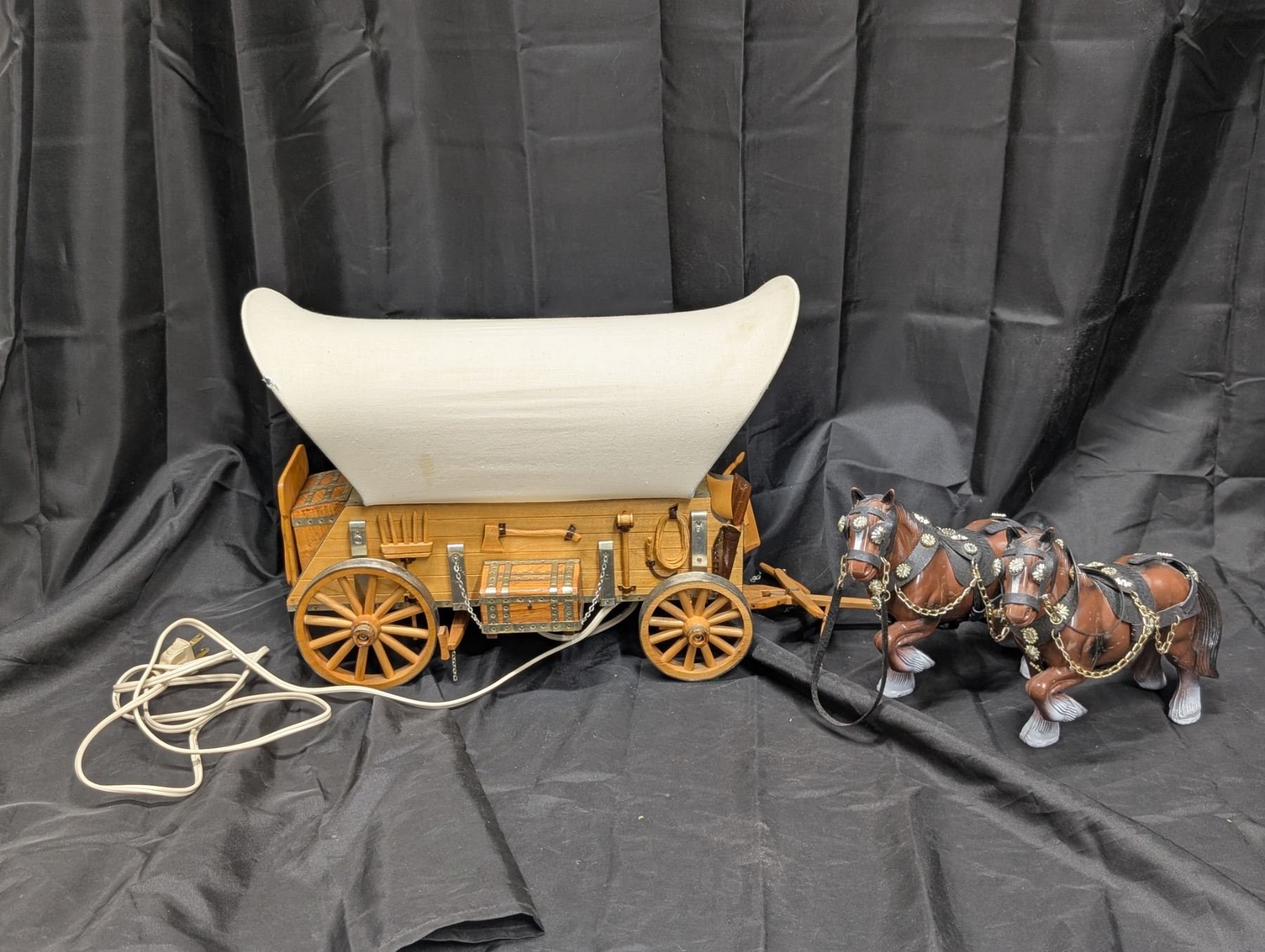 vintage style covered wagon lamp w/ horse figurines that can be attached