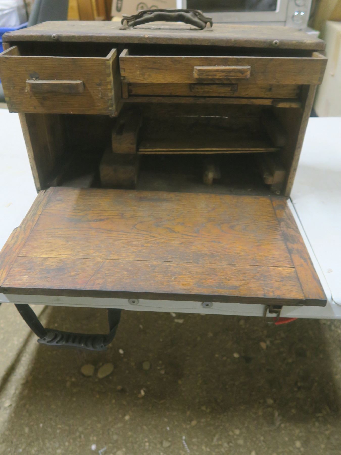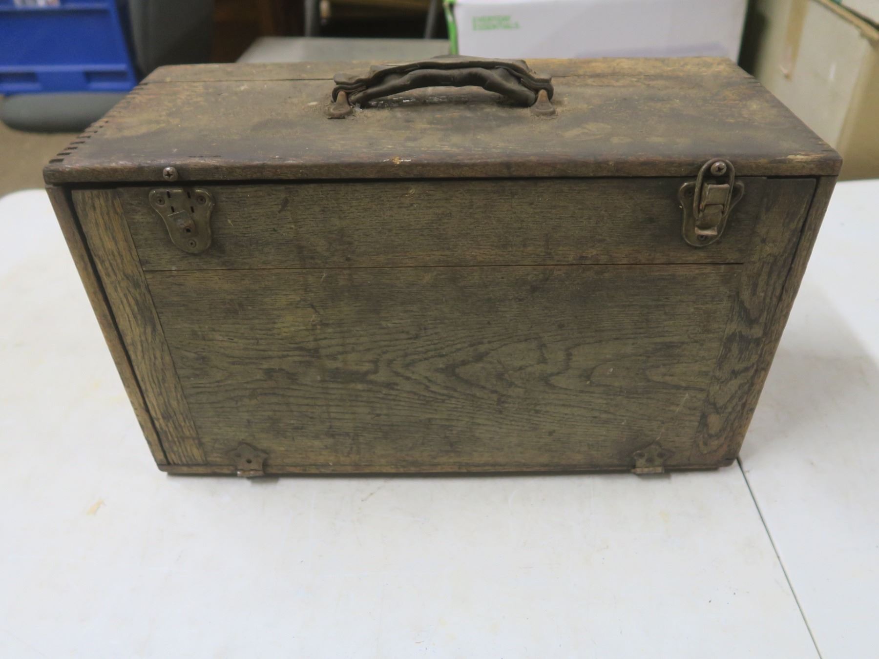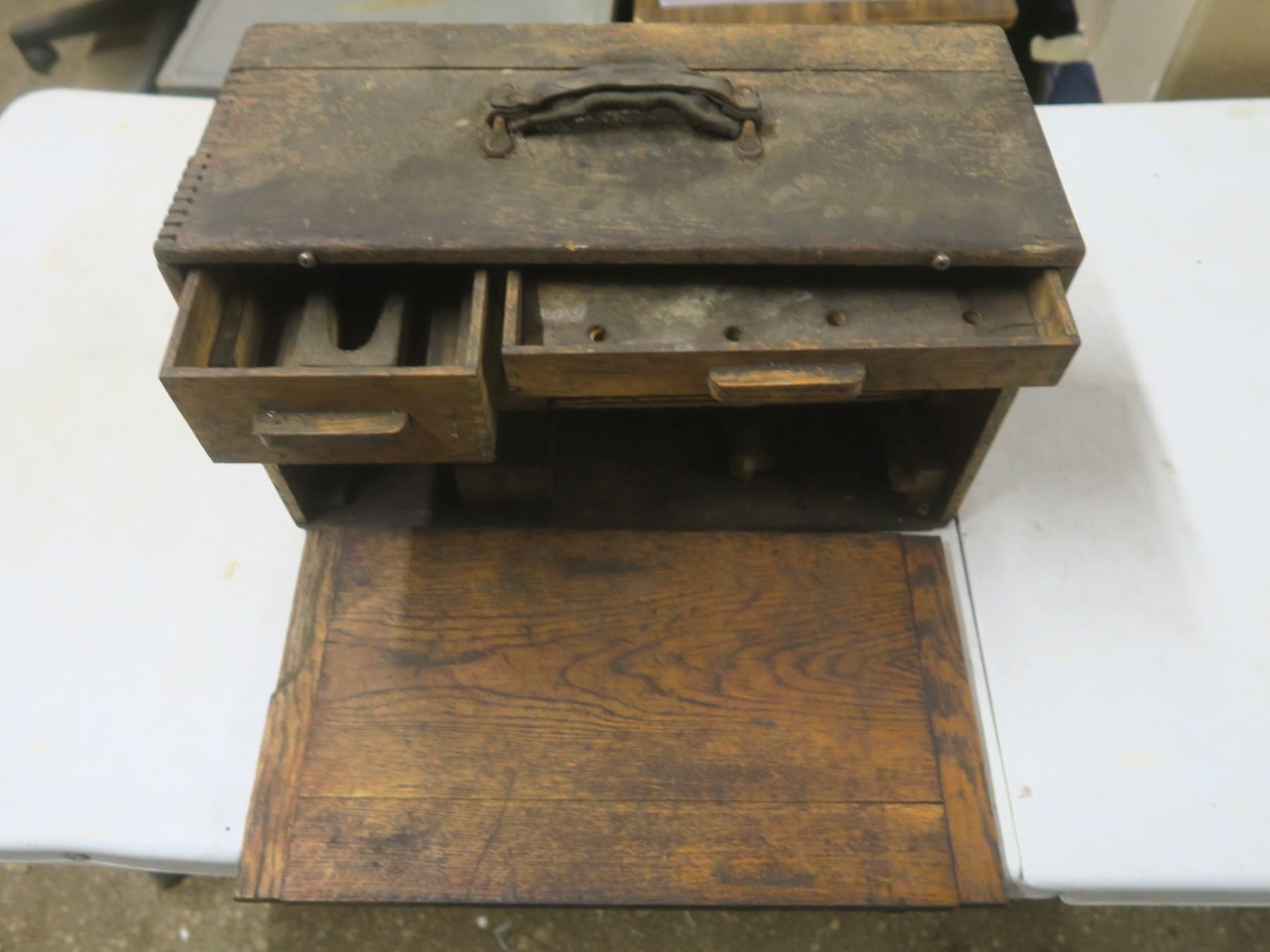 vintage wooden toolbox w/ flip down front - box joint corners