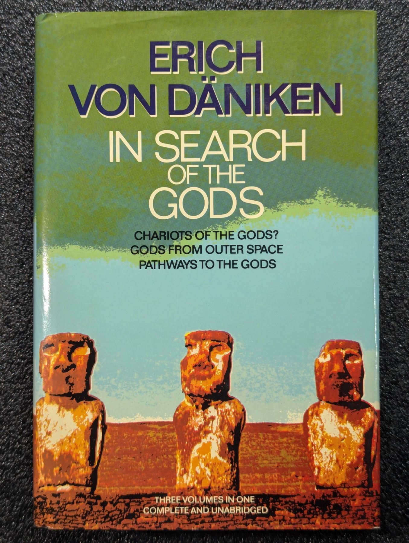 von Daniken, Erich. IN SEARCH OF THE GODS. Avenel Books, New York. 1989. 8vo. (4), 620, (8) pages. original black cloth, gilt, jacket. Diagrams. Maps. Bibliography. B&w photos and illustrations throughout. English text. The David Baker Library. Fine. This book is three volumes in one: 'Chariots of the Gods?', 'Gods from Outer Space' and 'Pathways to the Gods.' Lot weight: 2 lbs 0oz. Subject(s): Lost Civilizations.