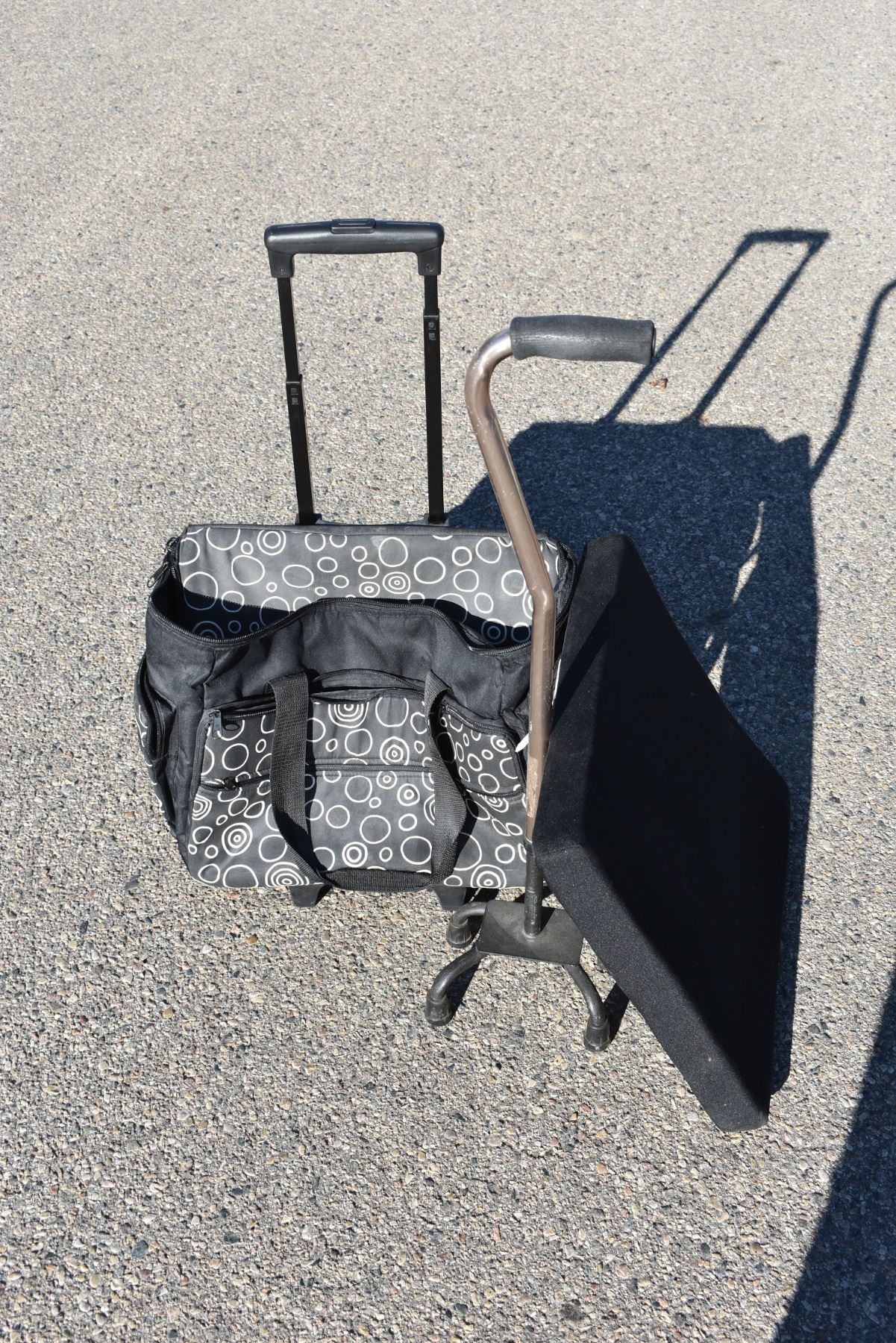 walker cane with cushion + rolling tote bag