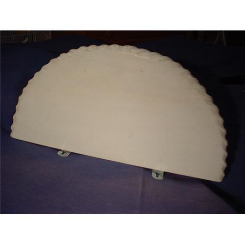 Painted a bluish white, larger than usual what-not shelf, with beautiful scroll edging, 3-way decorative holder 9" high, with 2 heavy metal hangers. Unusual.