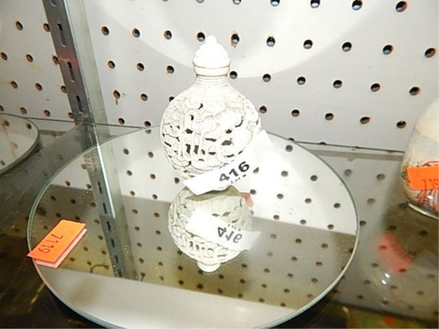 white intricately carved opium bottle