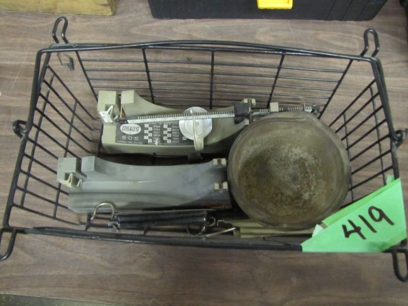 wire basket with scales and cast pot