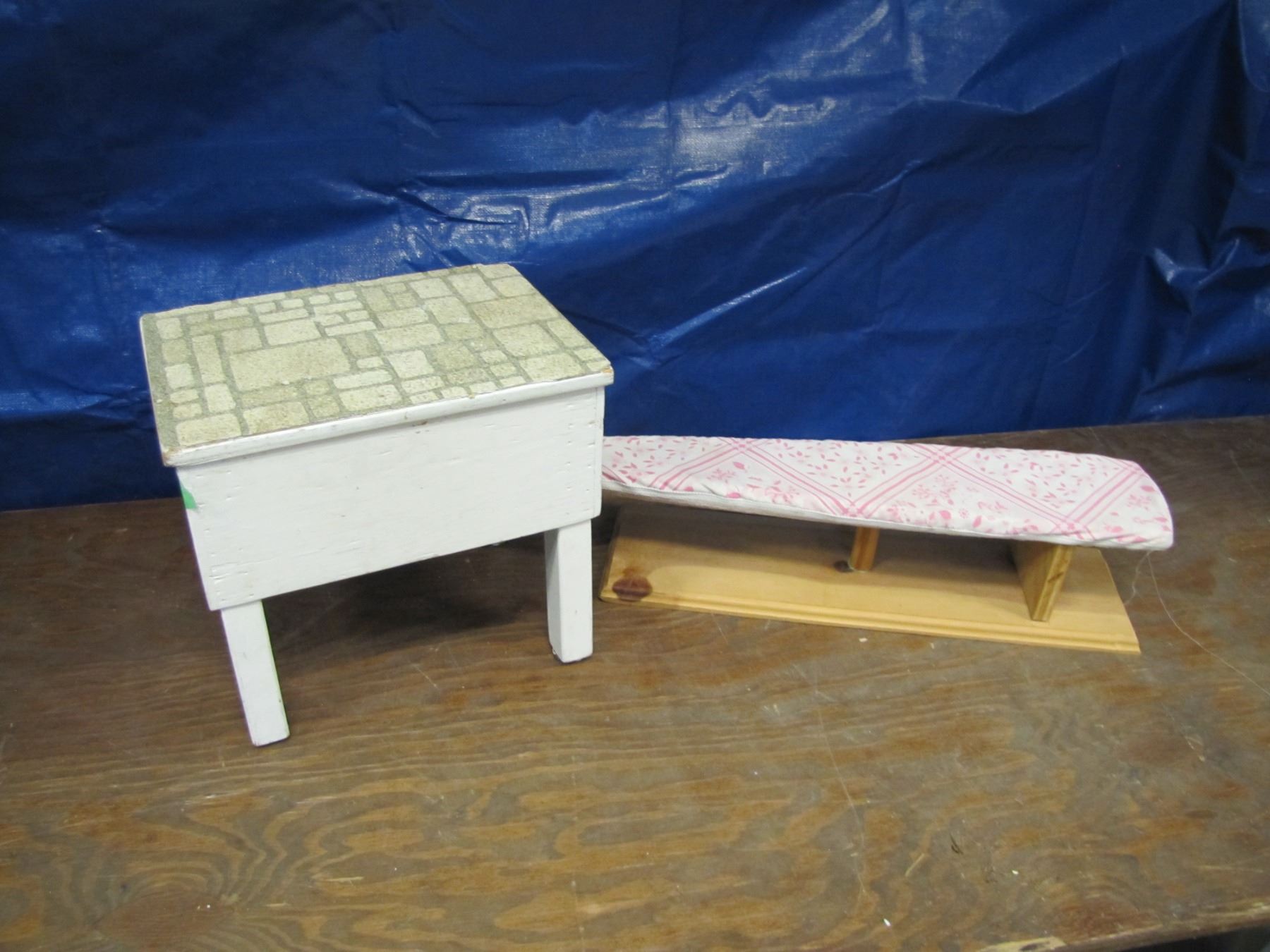 wood step stool and sm ironing board