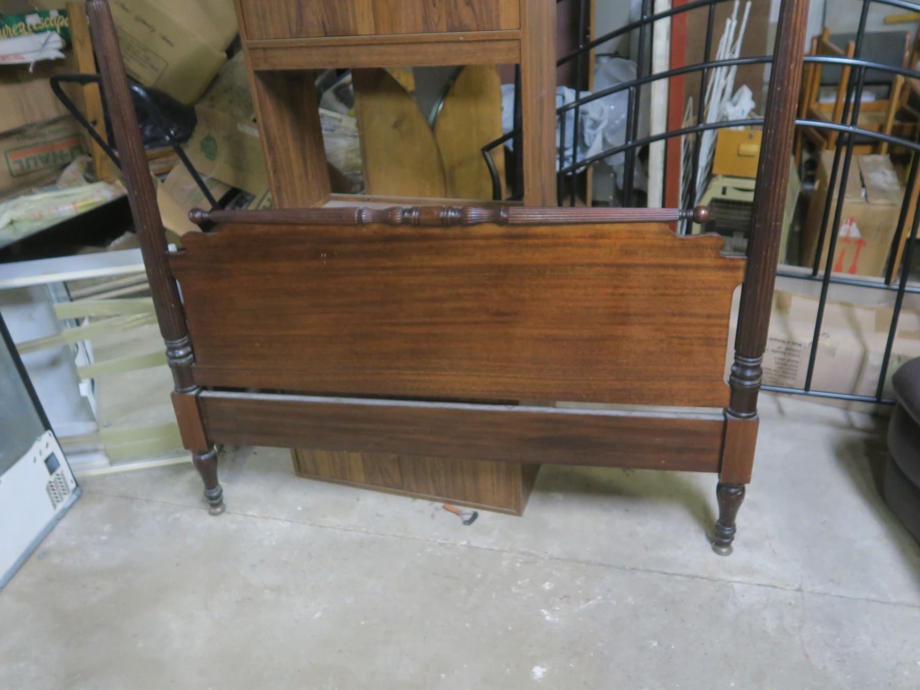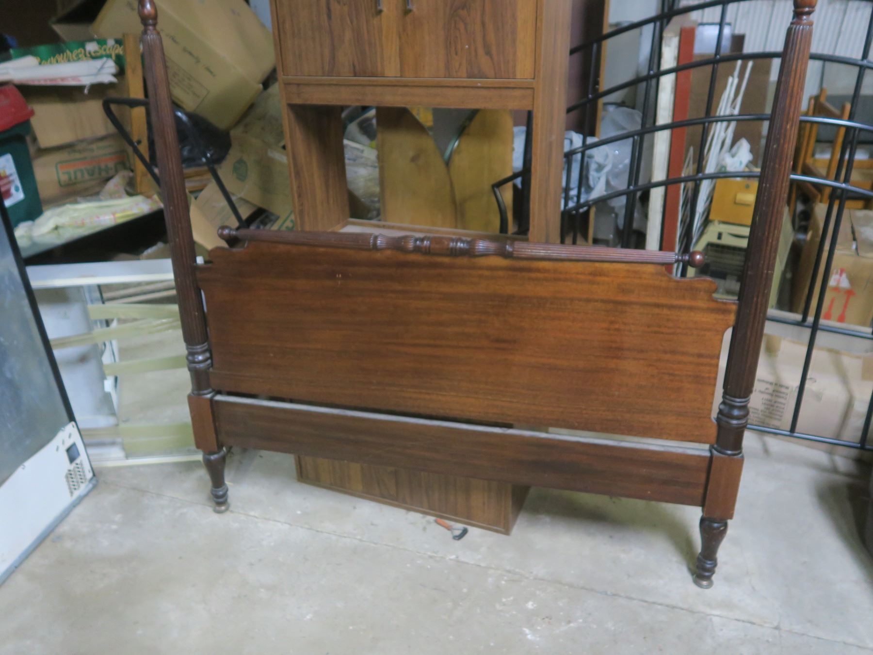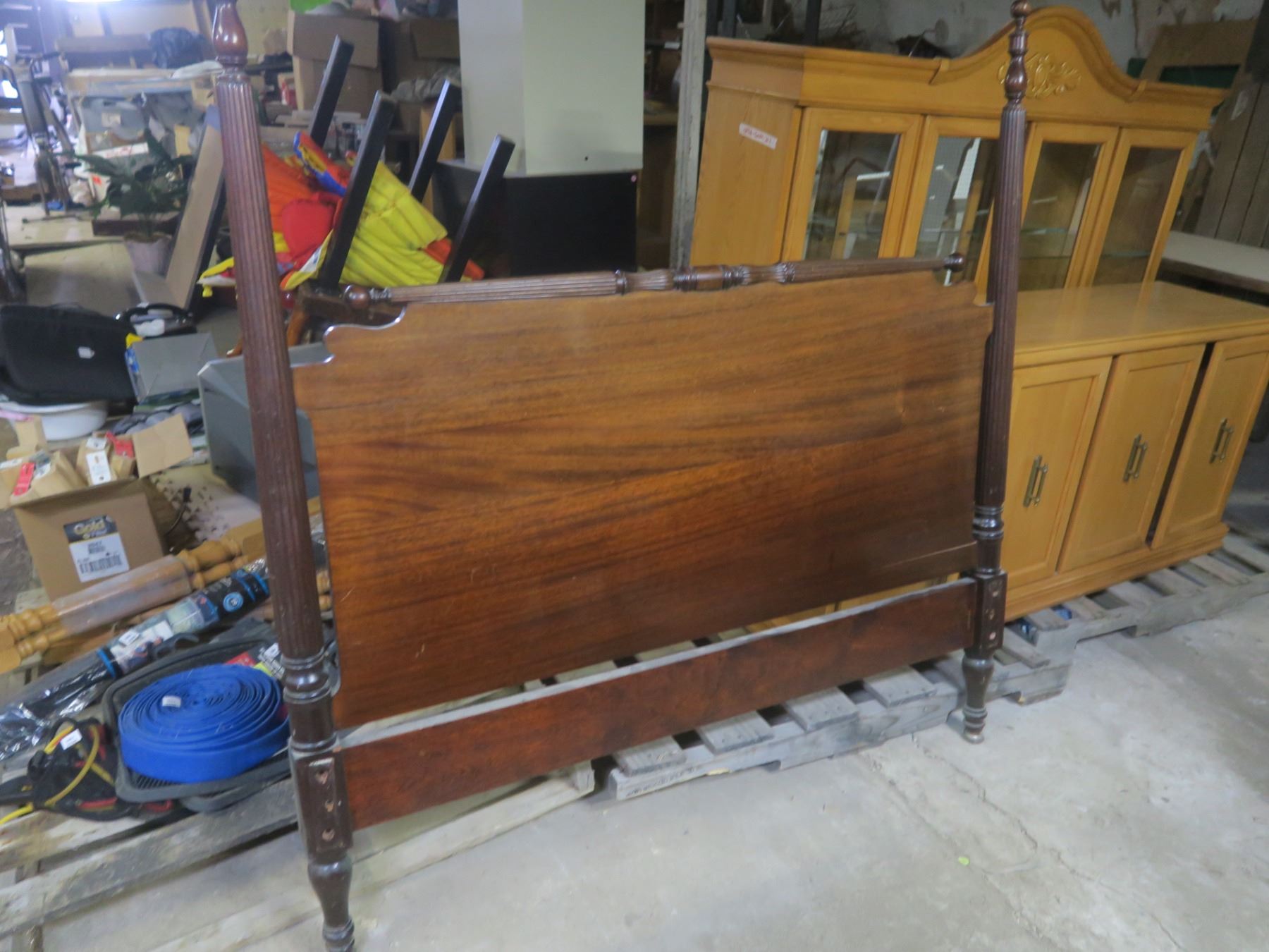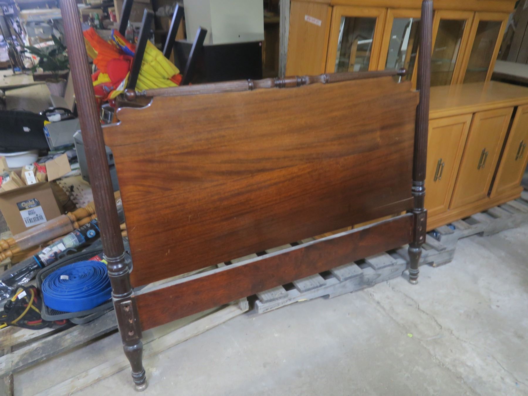 wooden queen size bed frame and rails (headboard 61.5"h x 58.5"w)