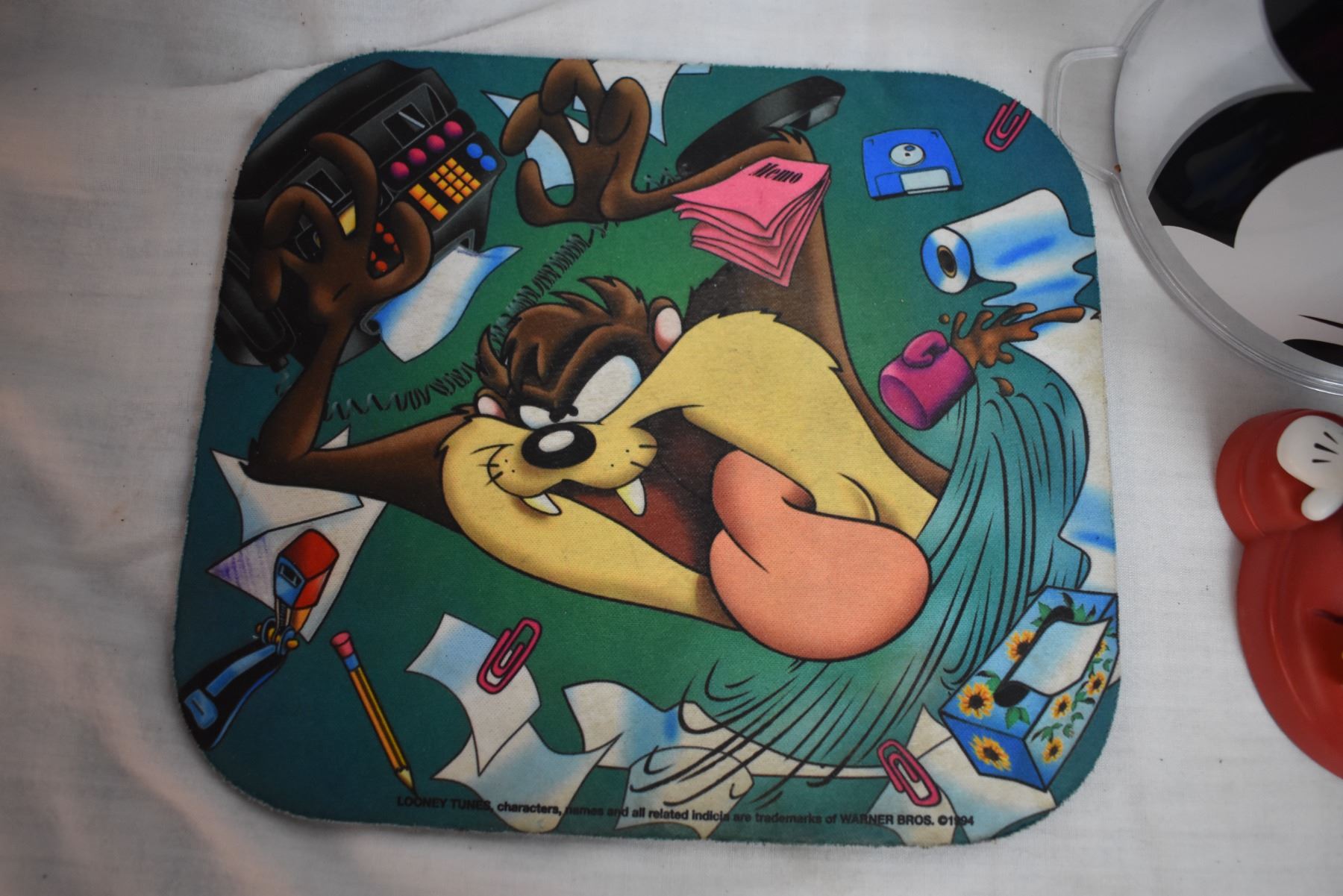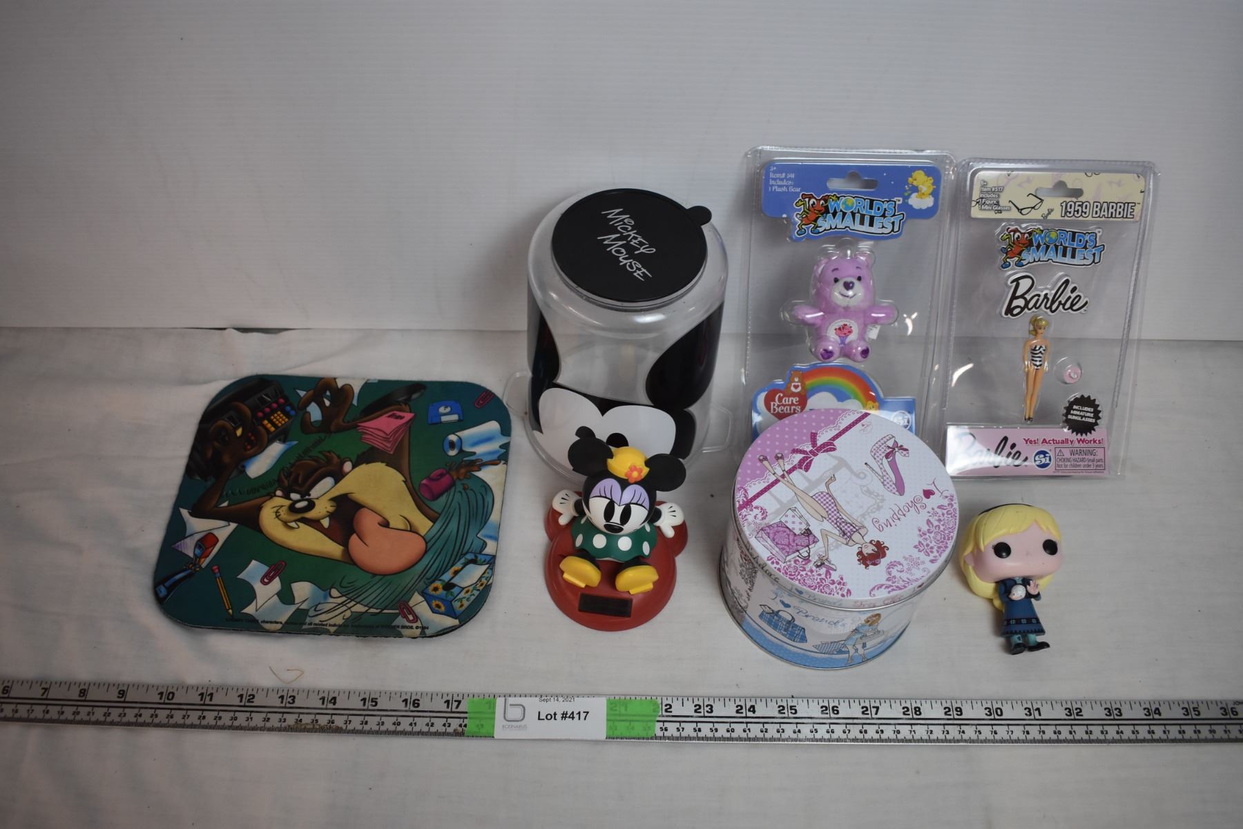 worlds smallest barbie + care bear, micky mouse bobbler + Tazmanian mousepad