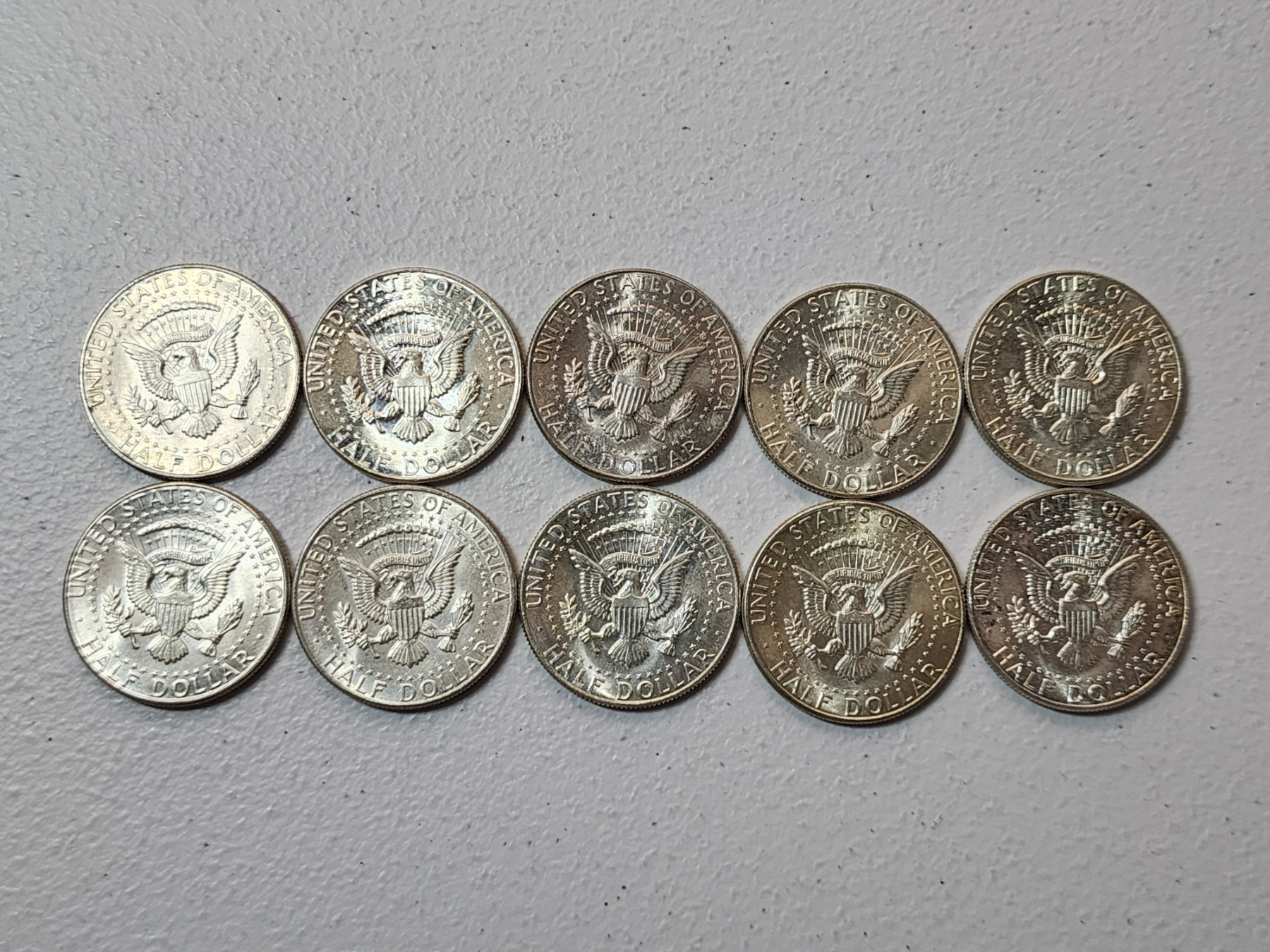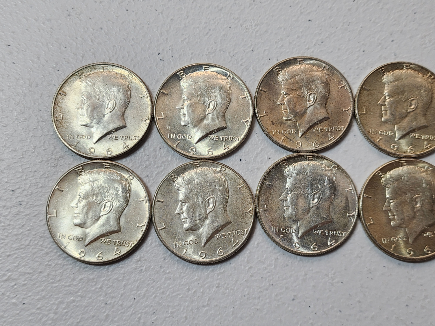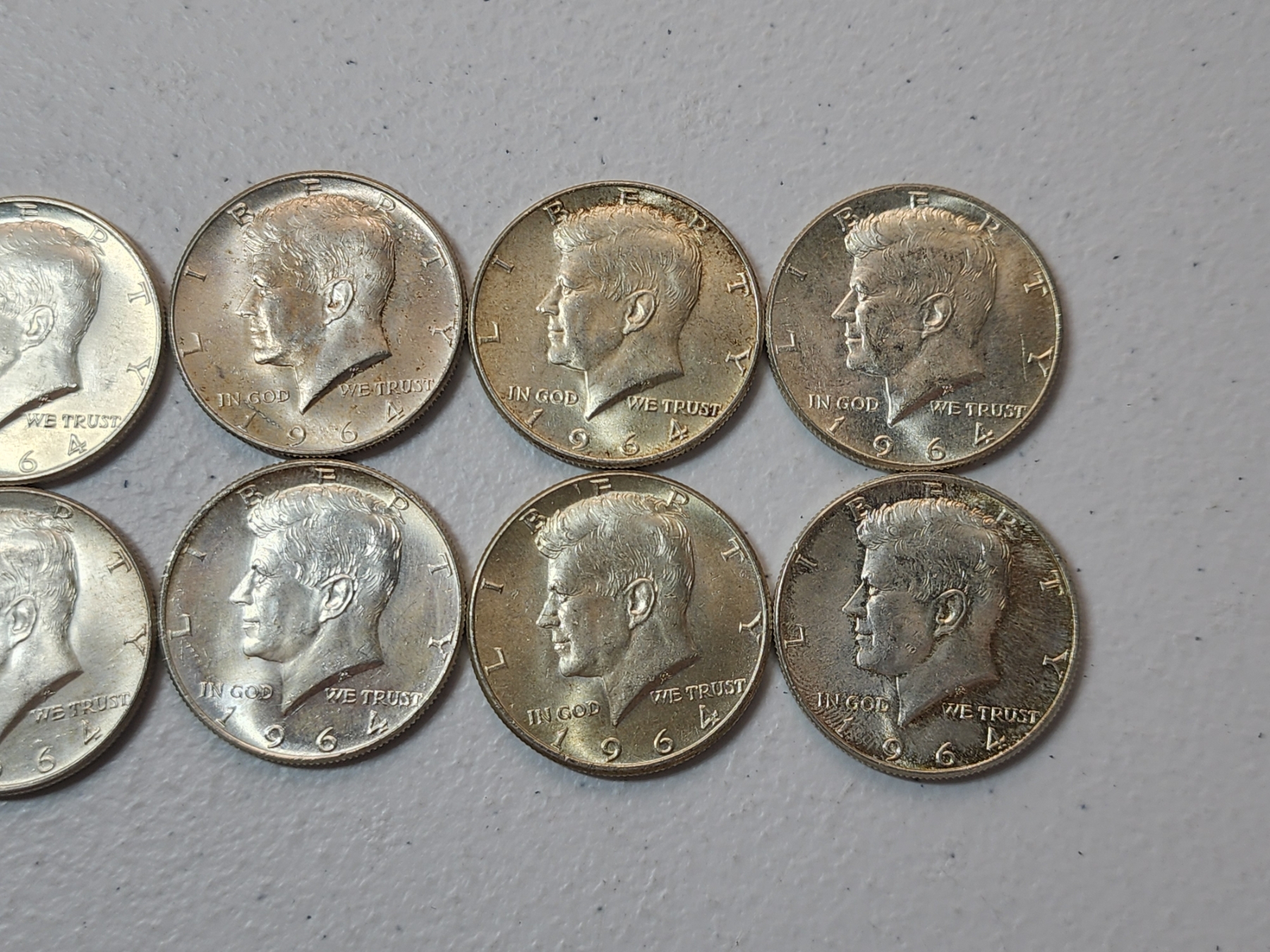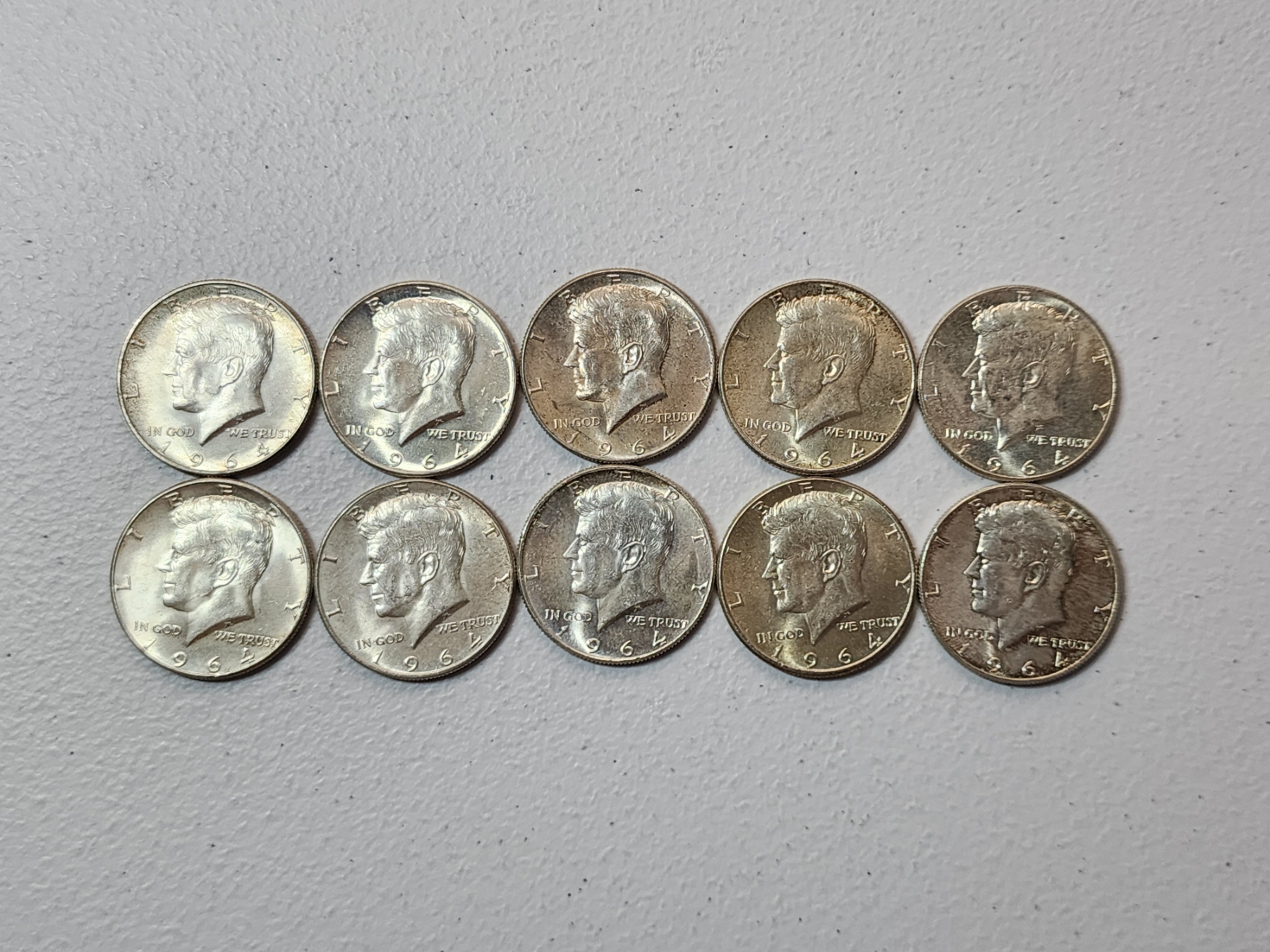 x10 1964 90% Silver Kennedy Half Dollars Face Value $5.00