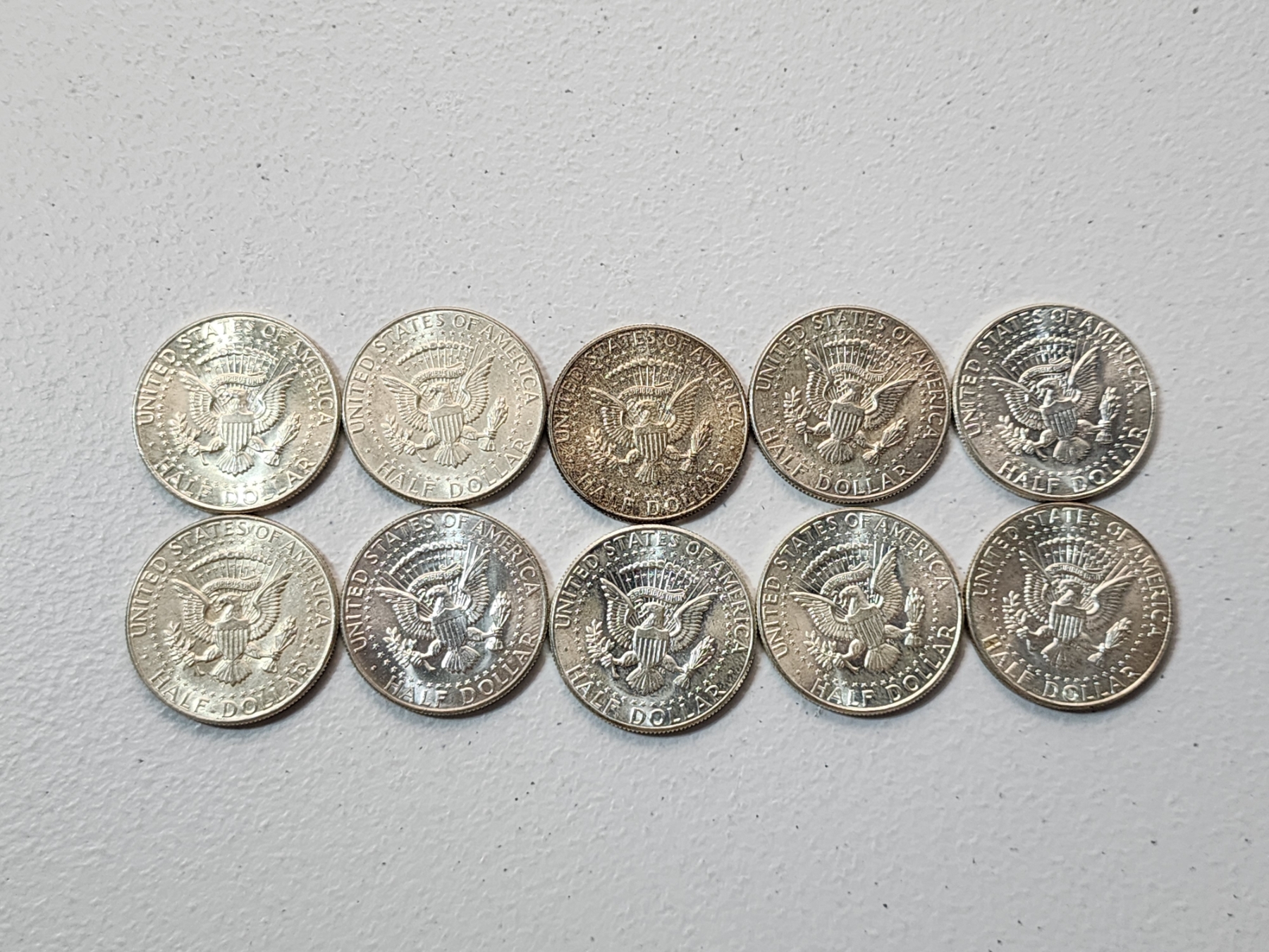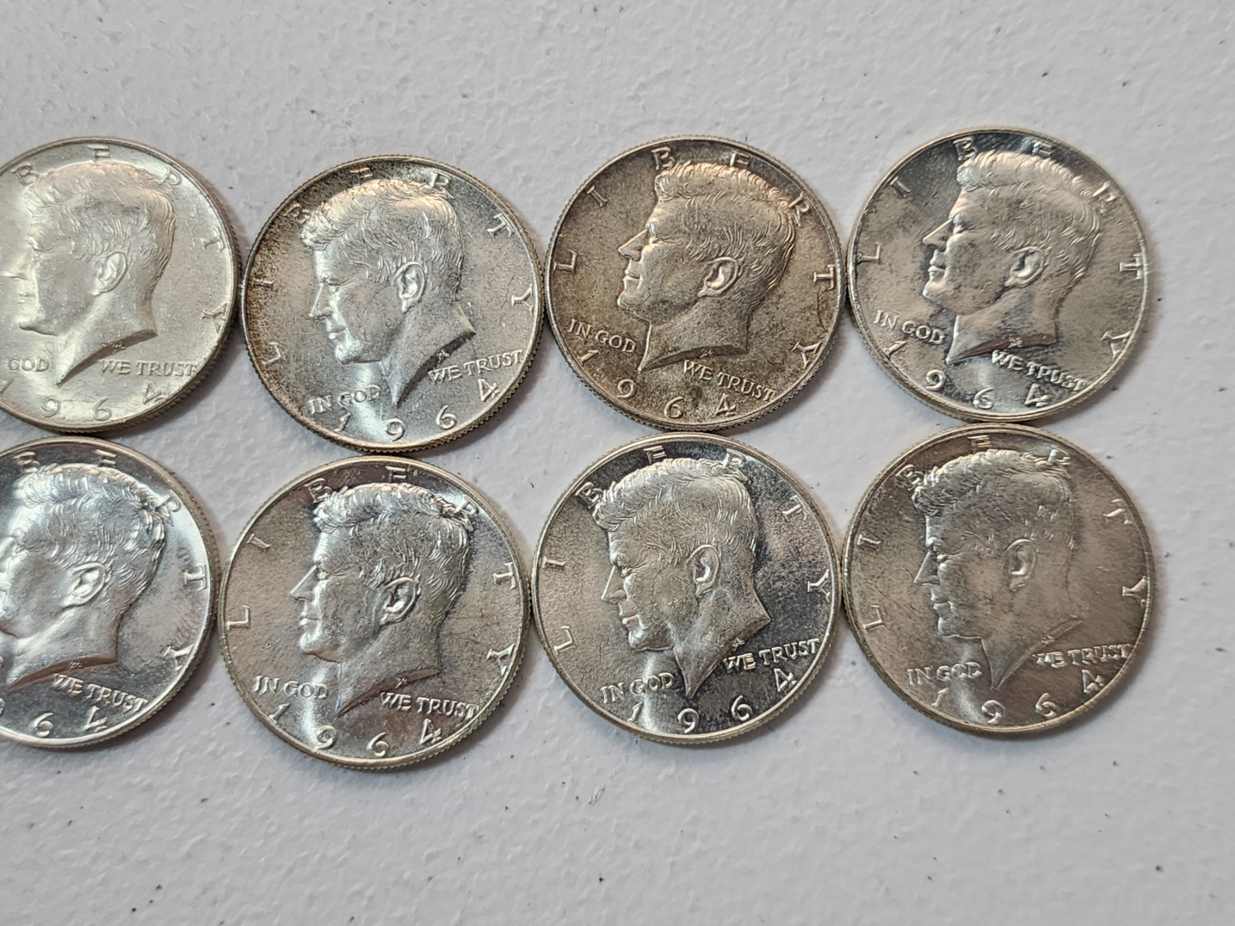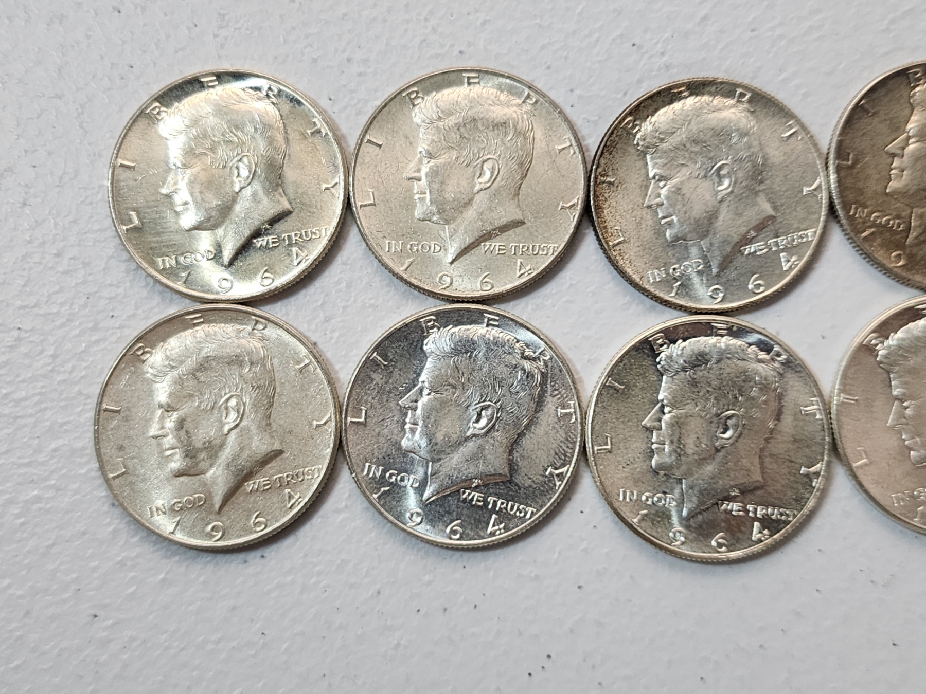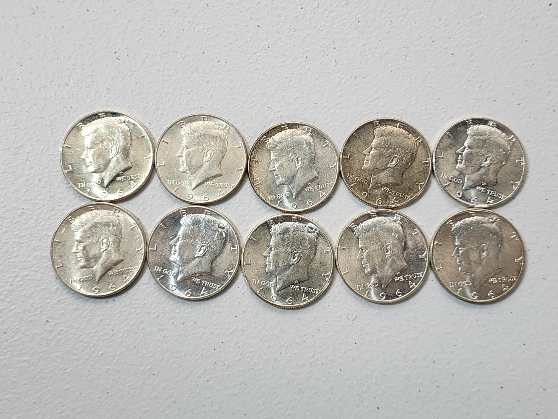 x10 1964 90% Silver Kennedy Half Dollars Face Value $5.00
