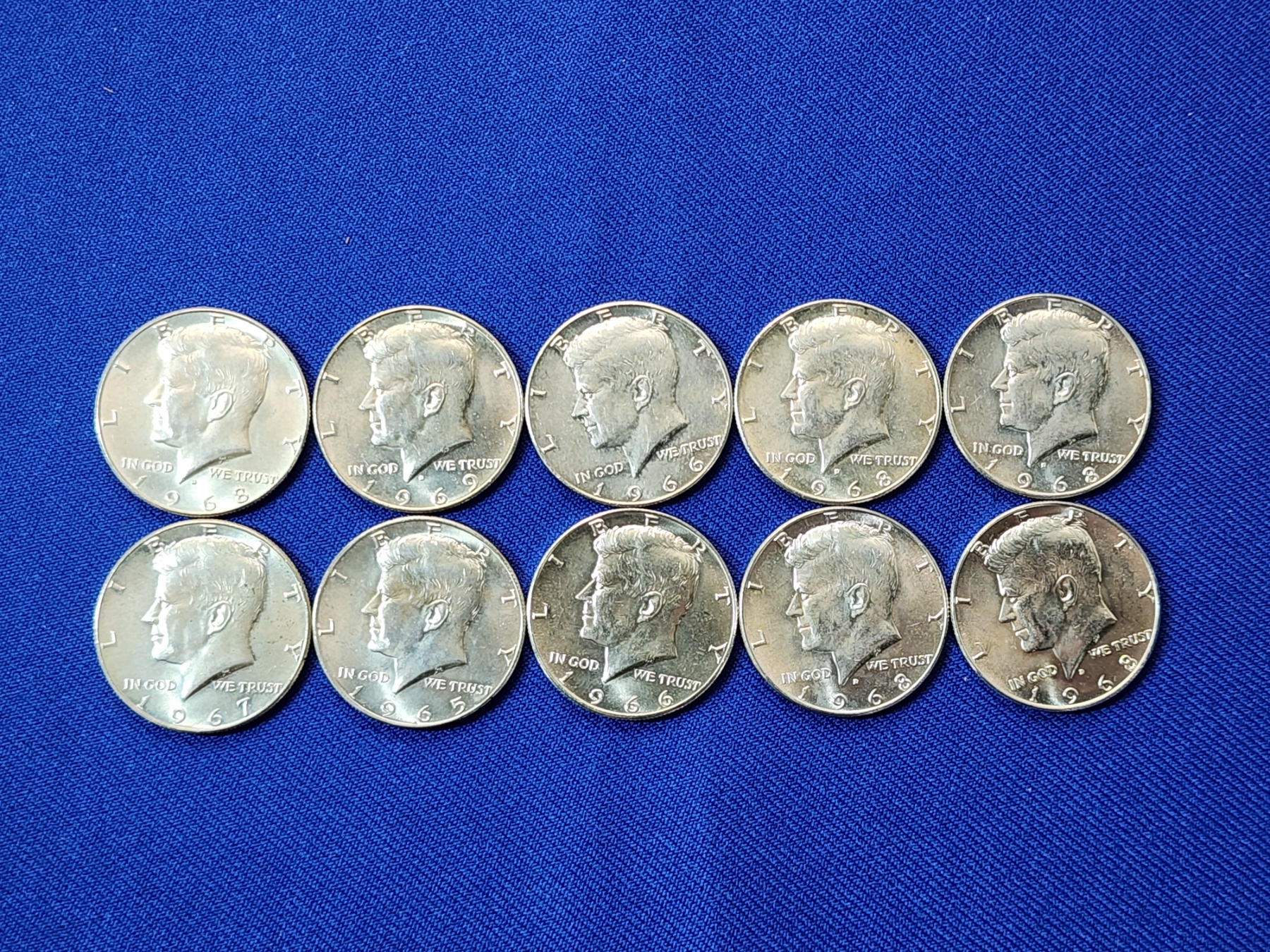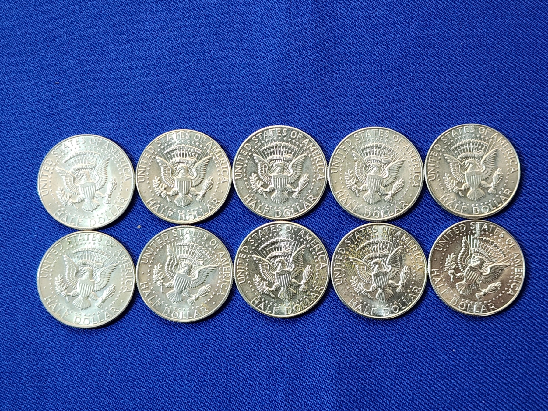 x10 Assorted Years Kennedy Half Dollars 40% Silver Face Value $5.00
