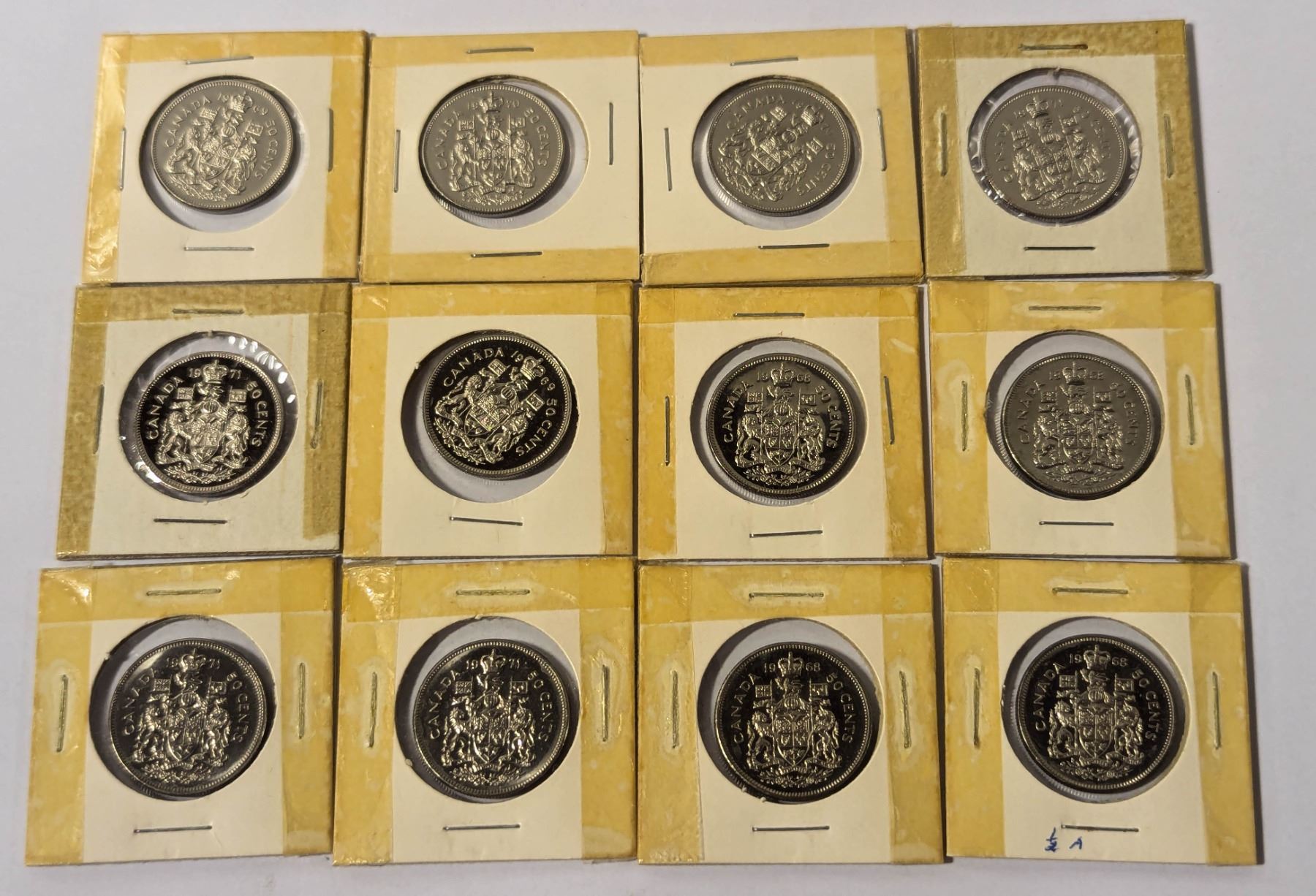 x12 VARIOUS GRADES OLD CANADA 50 CENTS COINS