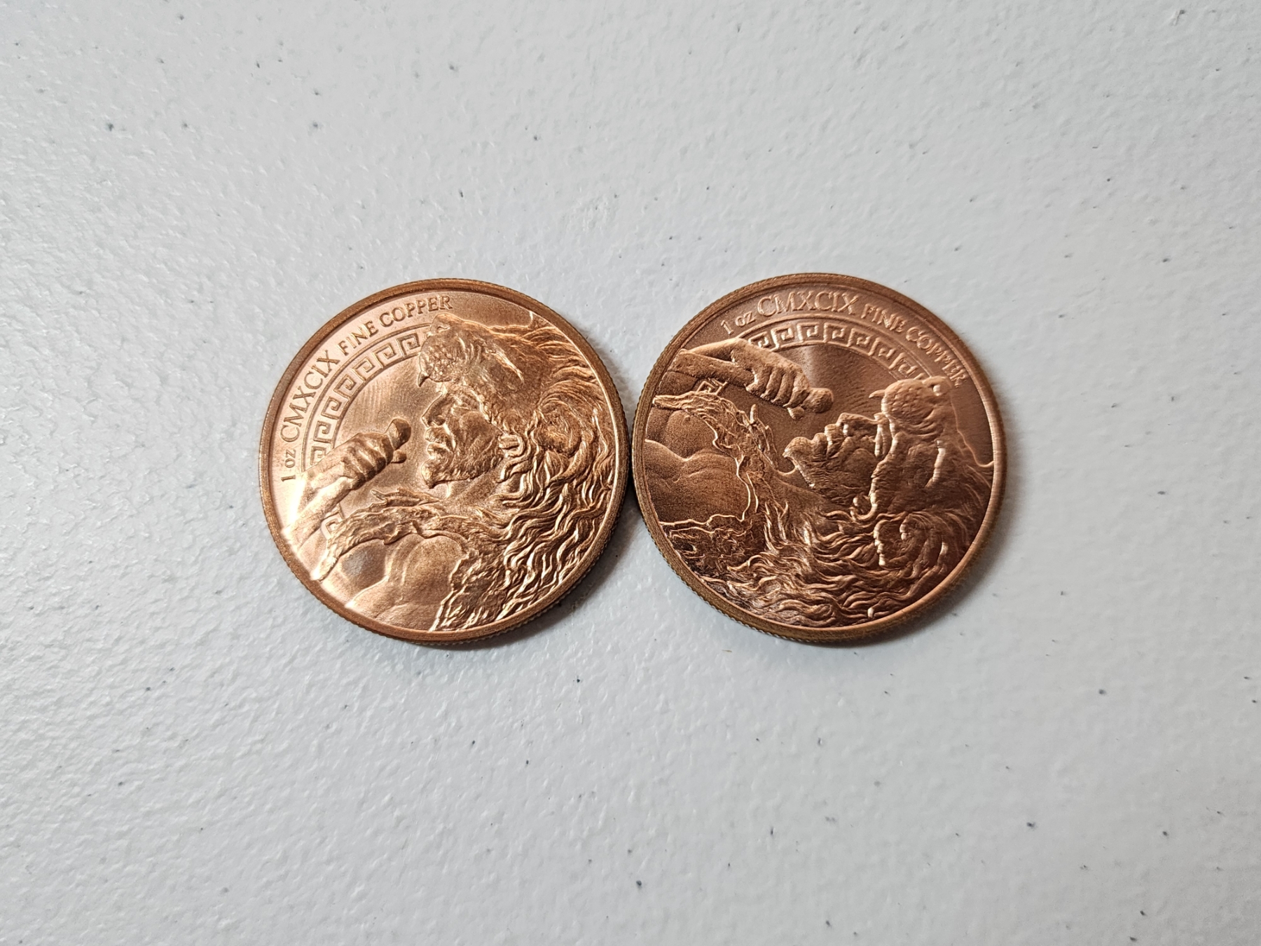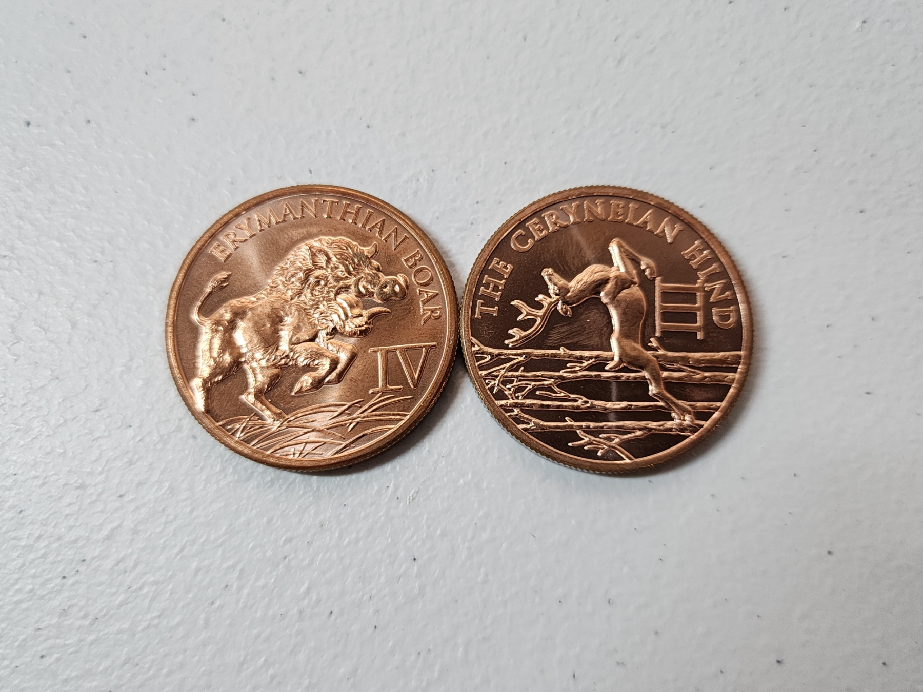 x2 1 oz Fine Copper Rounds: The Ceryneian Hind & Erymanthian Boar