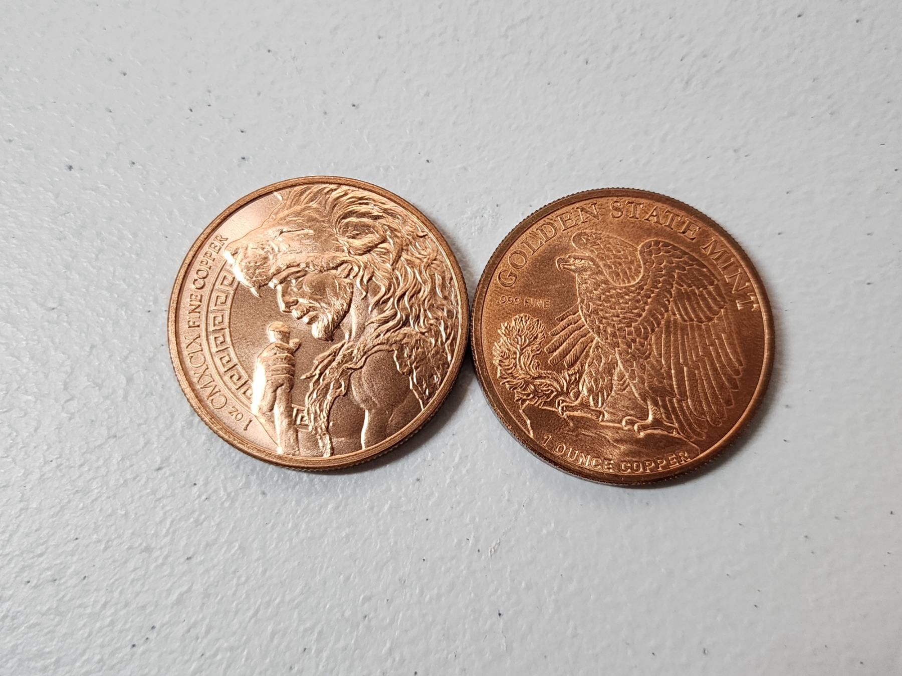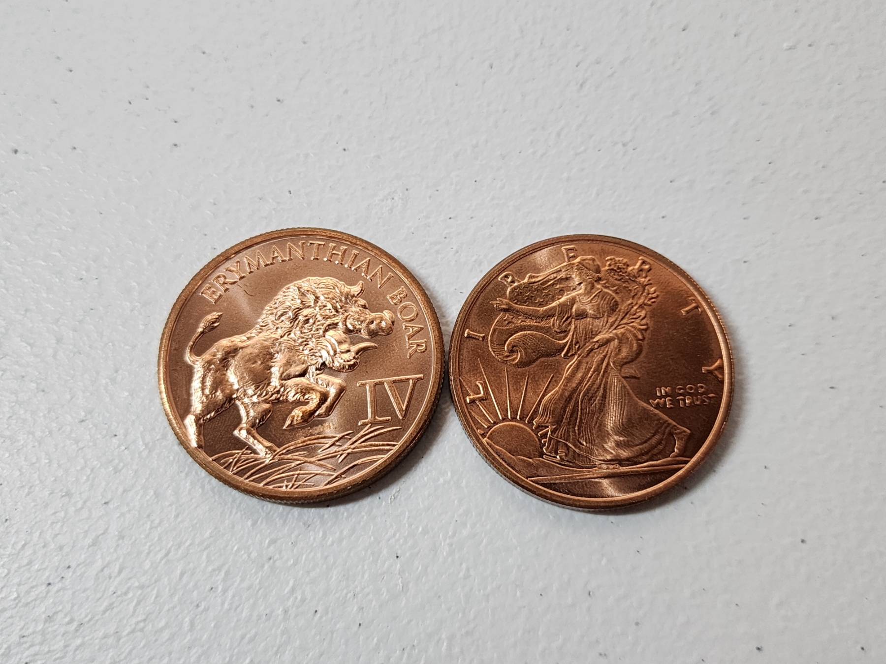 x2 1 oz Fine Copper Rounds: Walking Liberty & Erymanthian Boar