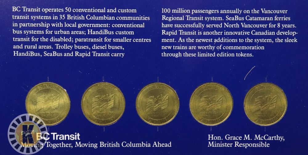 x2 BC TRANSIT 5 VARIOUS COMMEMORATIVE TOKENS NEW