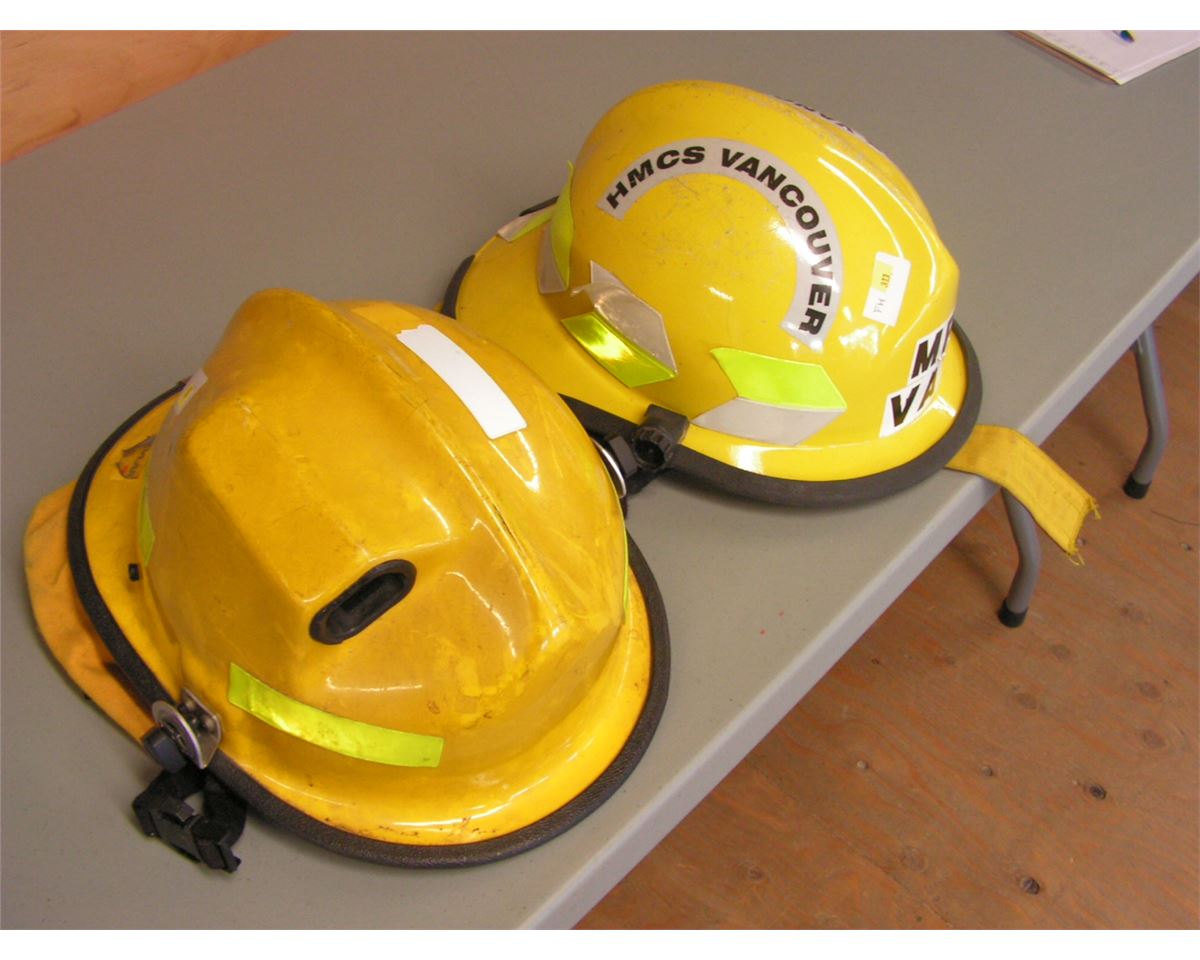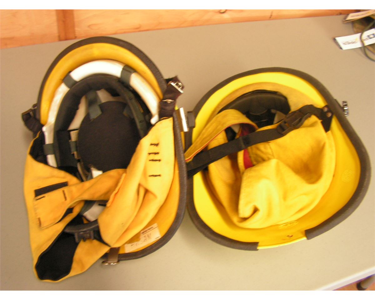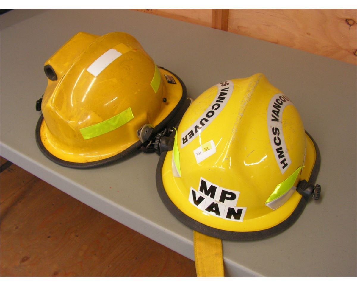 Lot of 2 fire fighter helmets direct from a Canadian Military base