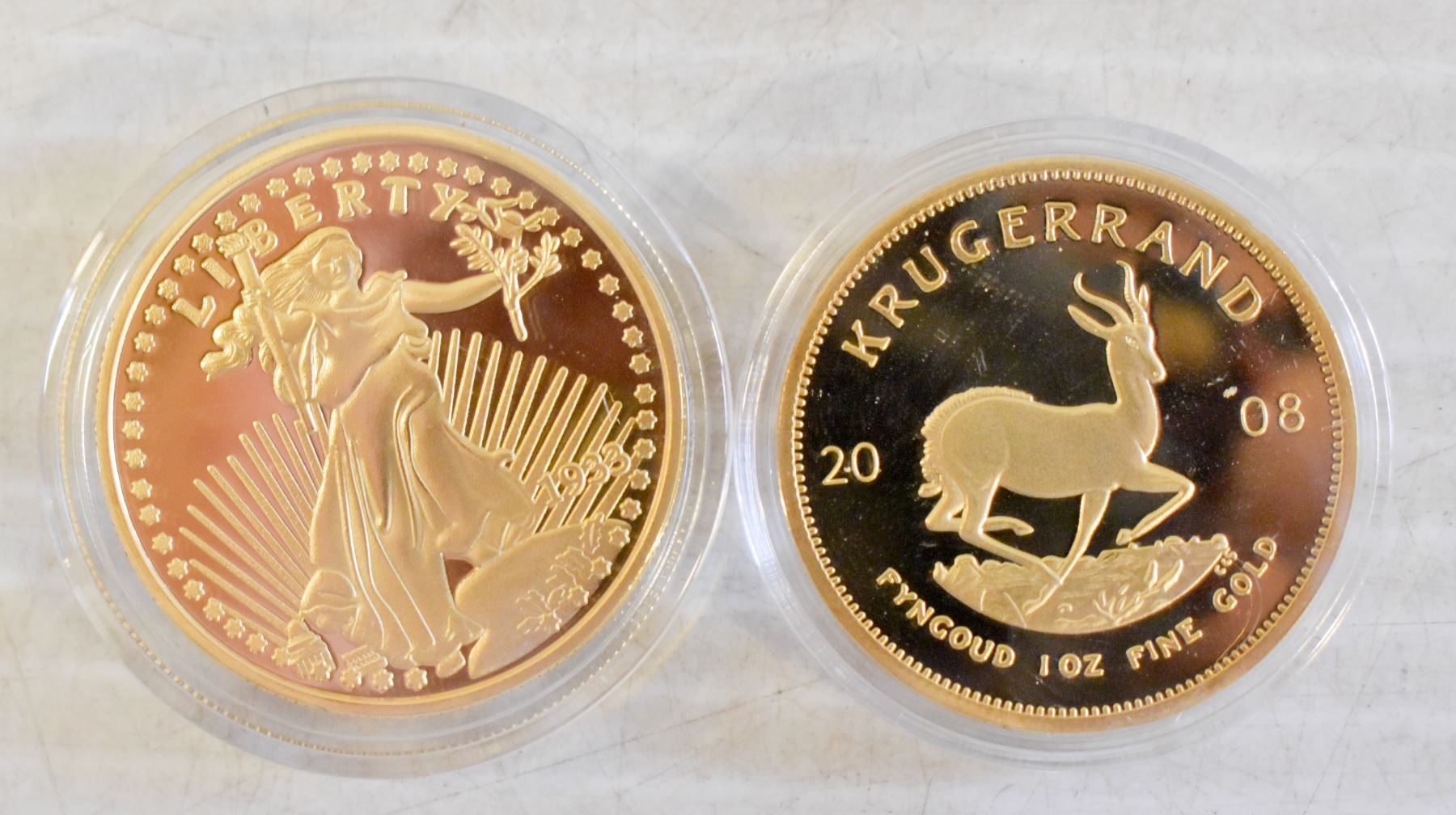 x2 GOLD PLATED 1oz GOLD COIN COPIES, NOVELTY