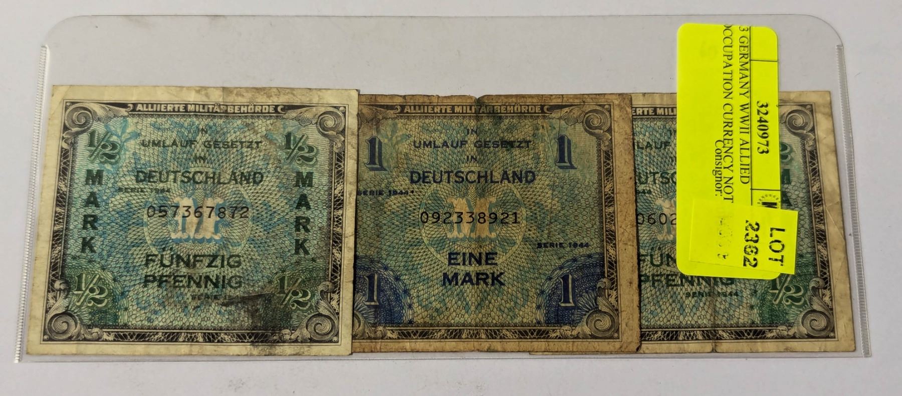 x3 GERMANY WWII ALLIED OCCUPATION CURRENCY NOTES
