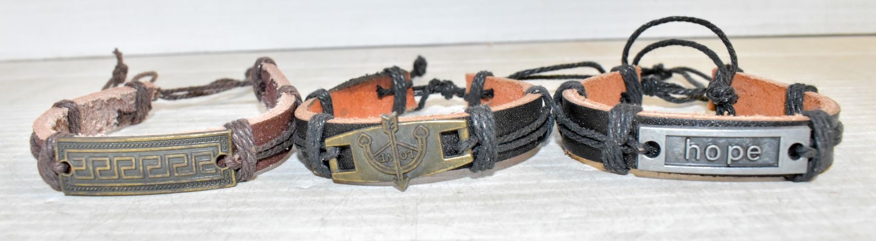 x3 HAND CRAFTED VARIOUS LEATHER BRACELETS, NEW