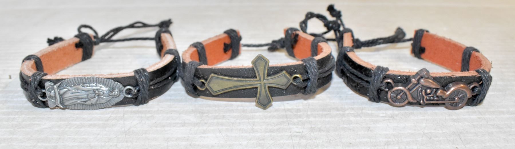 x3 HAND CRAFTED VARIOUS LEATHER BRACELETS, NEW