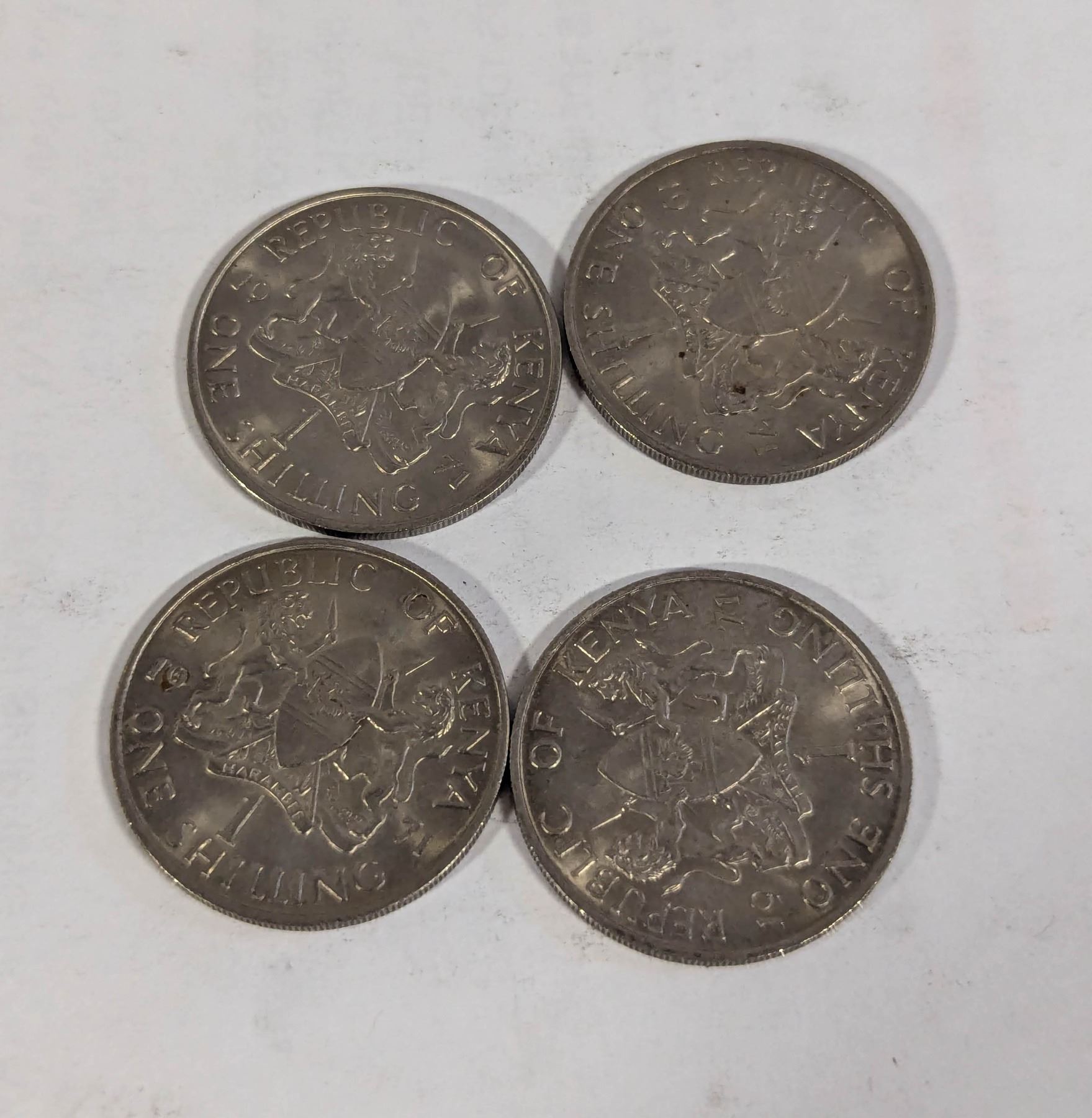 x4 1971 REPUBLIC OF KENYA 1 SHILLING COINS, BU