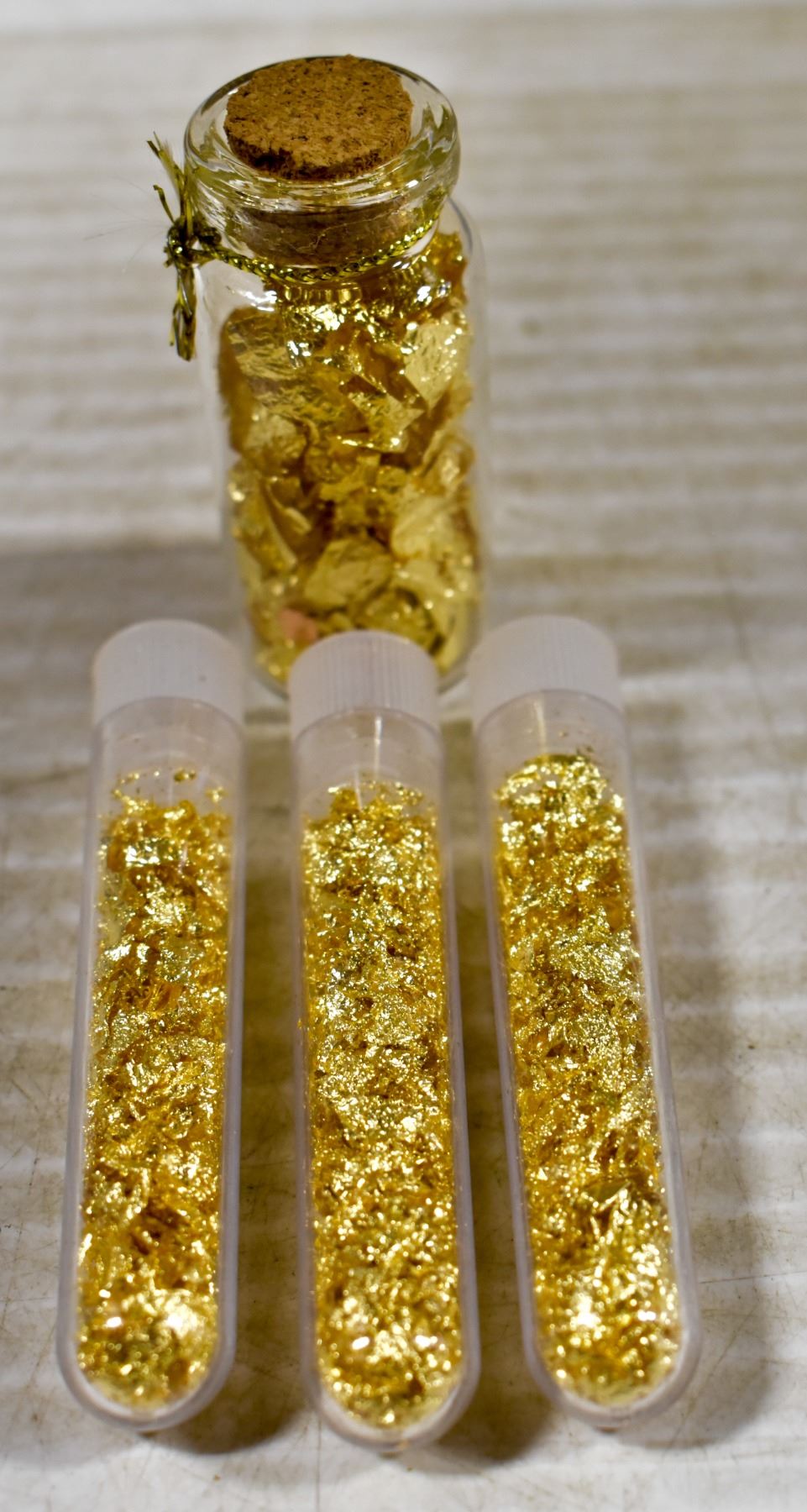 x4 VIALS FILLED WITH GOLD LEAF FLAKES