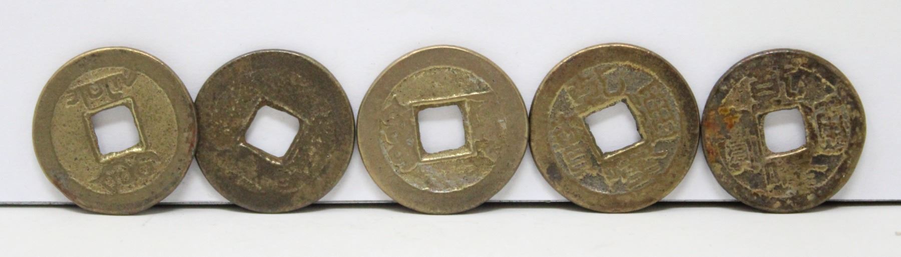 x5 ANCIENT CHINESE CASH COIN, CIRCULATED CONDITION