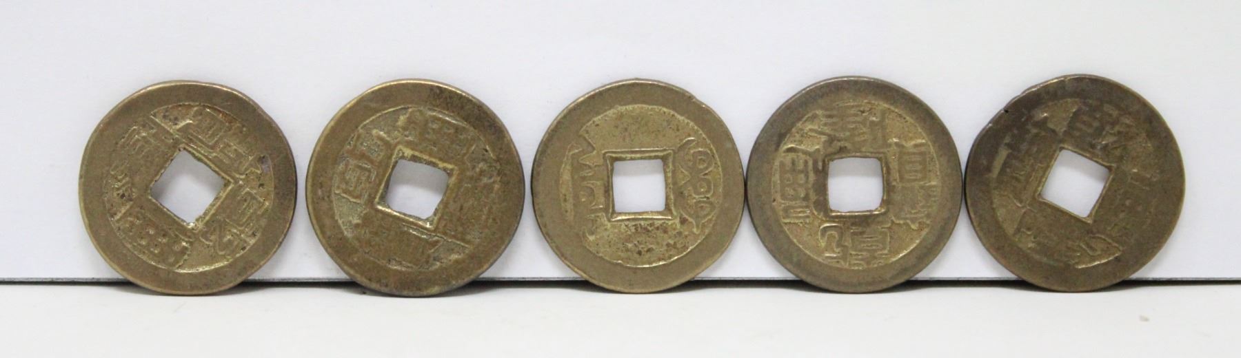 x5 ANCIENT CHINESE CASH COIN, CIRCULATED CONDITION