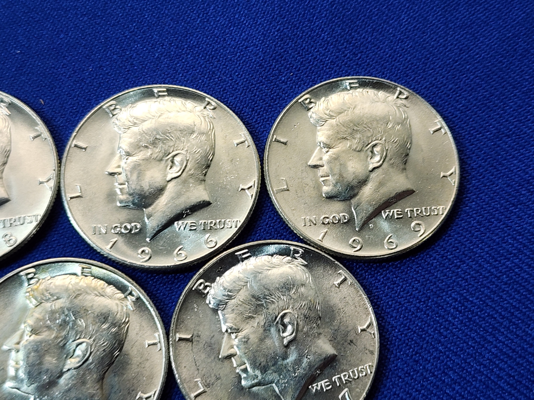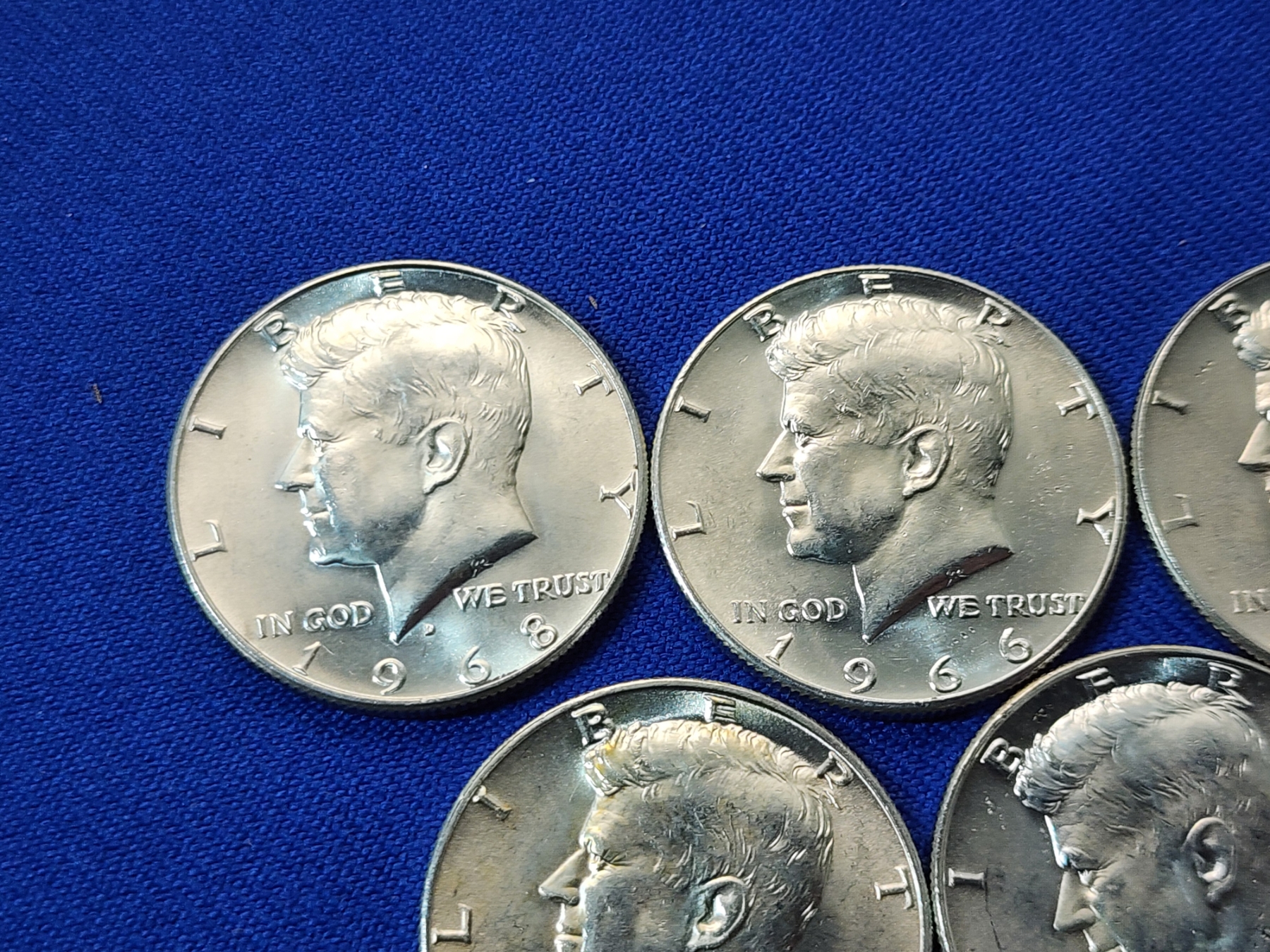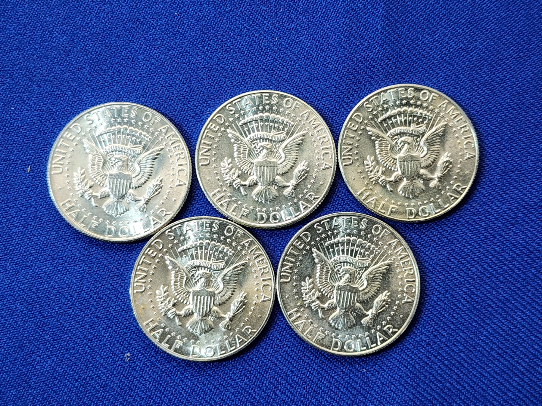 x5 Assorted Years Kennedy Half Dollars 40% Silver FV: $2.50 and Coin Tube