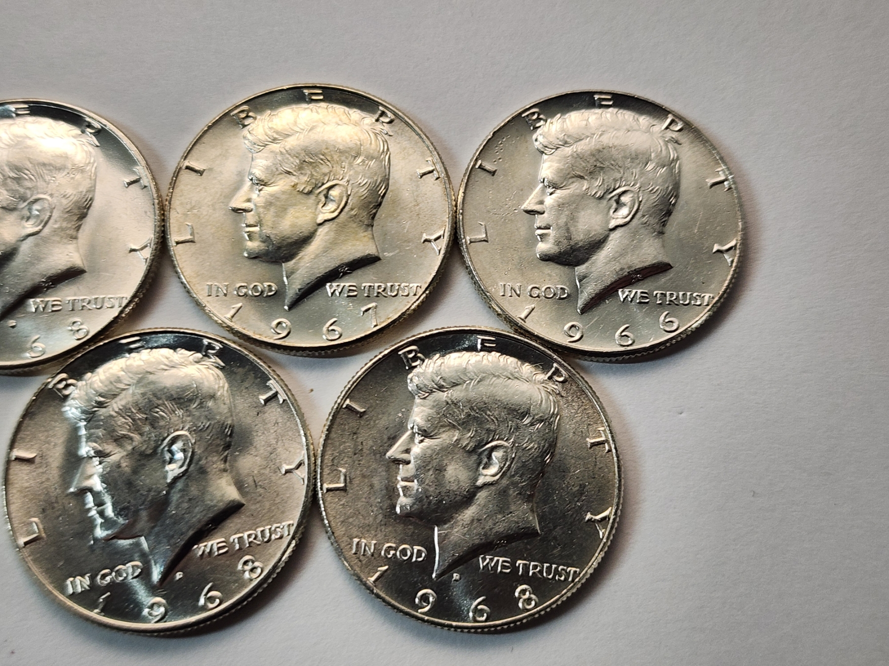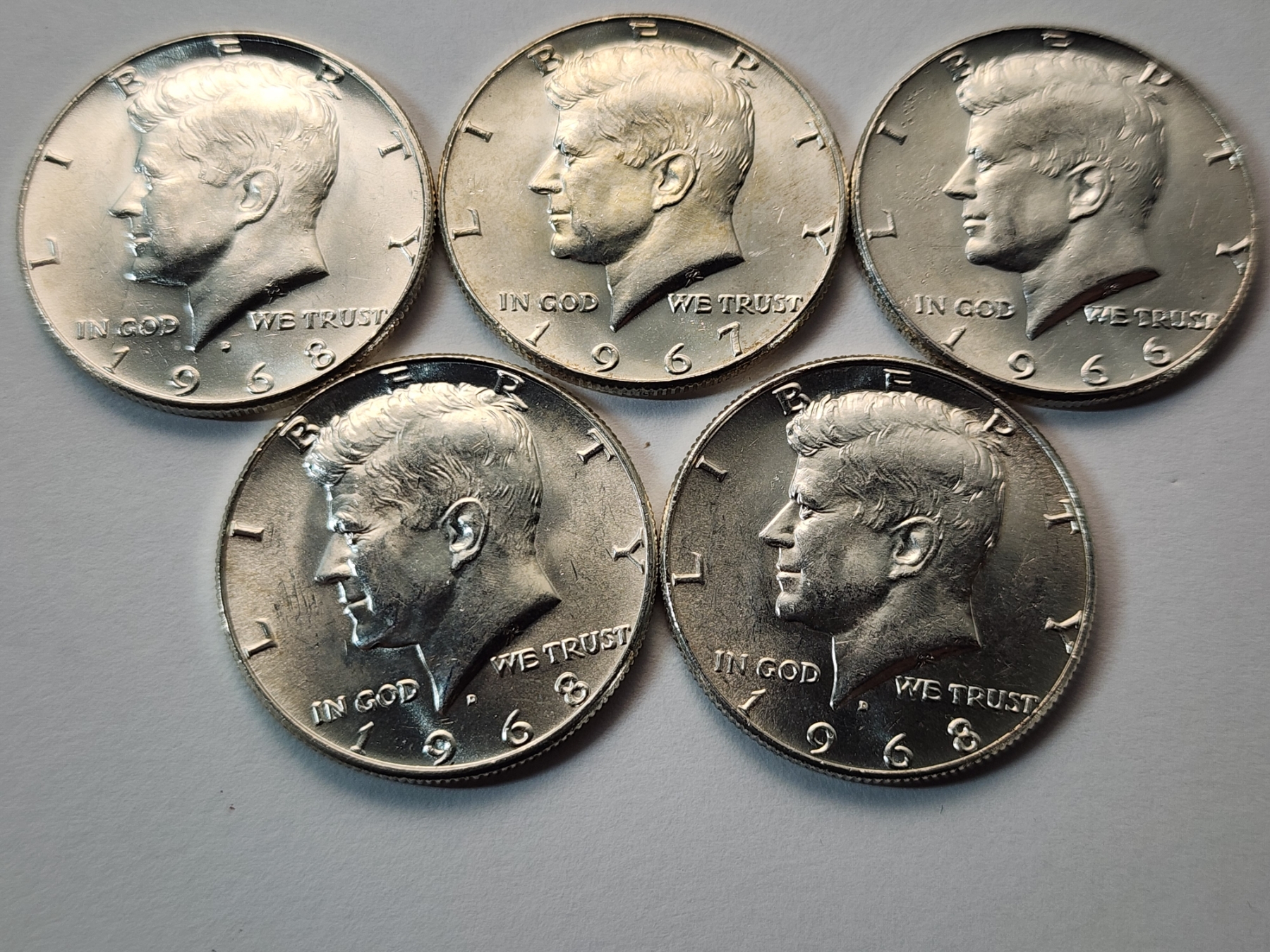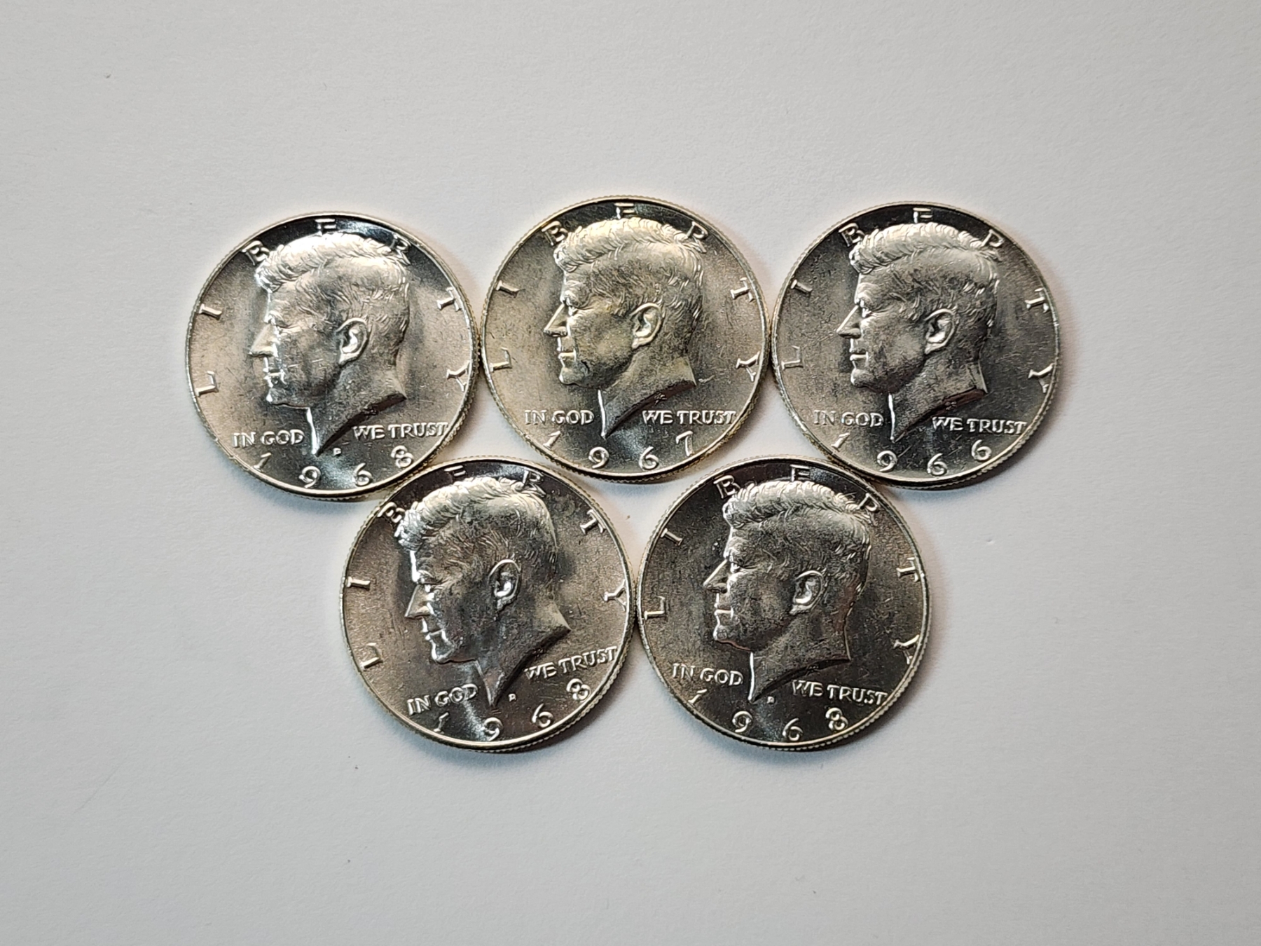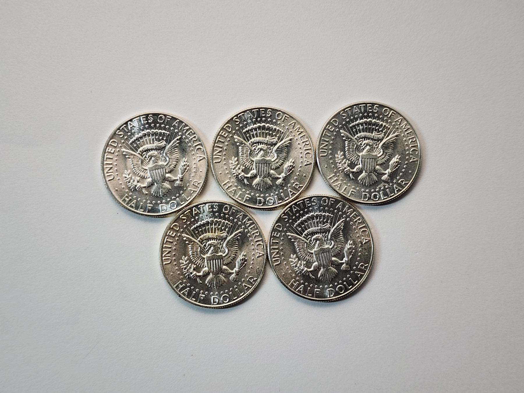 x5 Assorted Years Kennedy Half Dollars 40% Silver Face Value $2.50