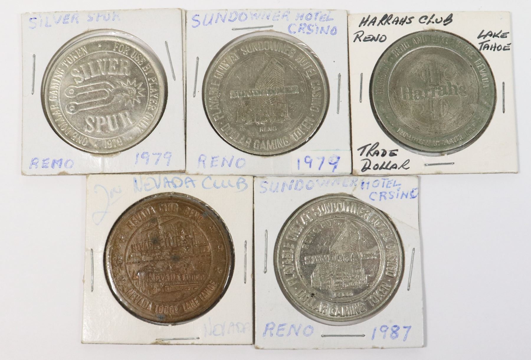 x5 VARIOUS VINTAGE LAS VEGAS CASINO TOKENS ETC.