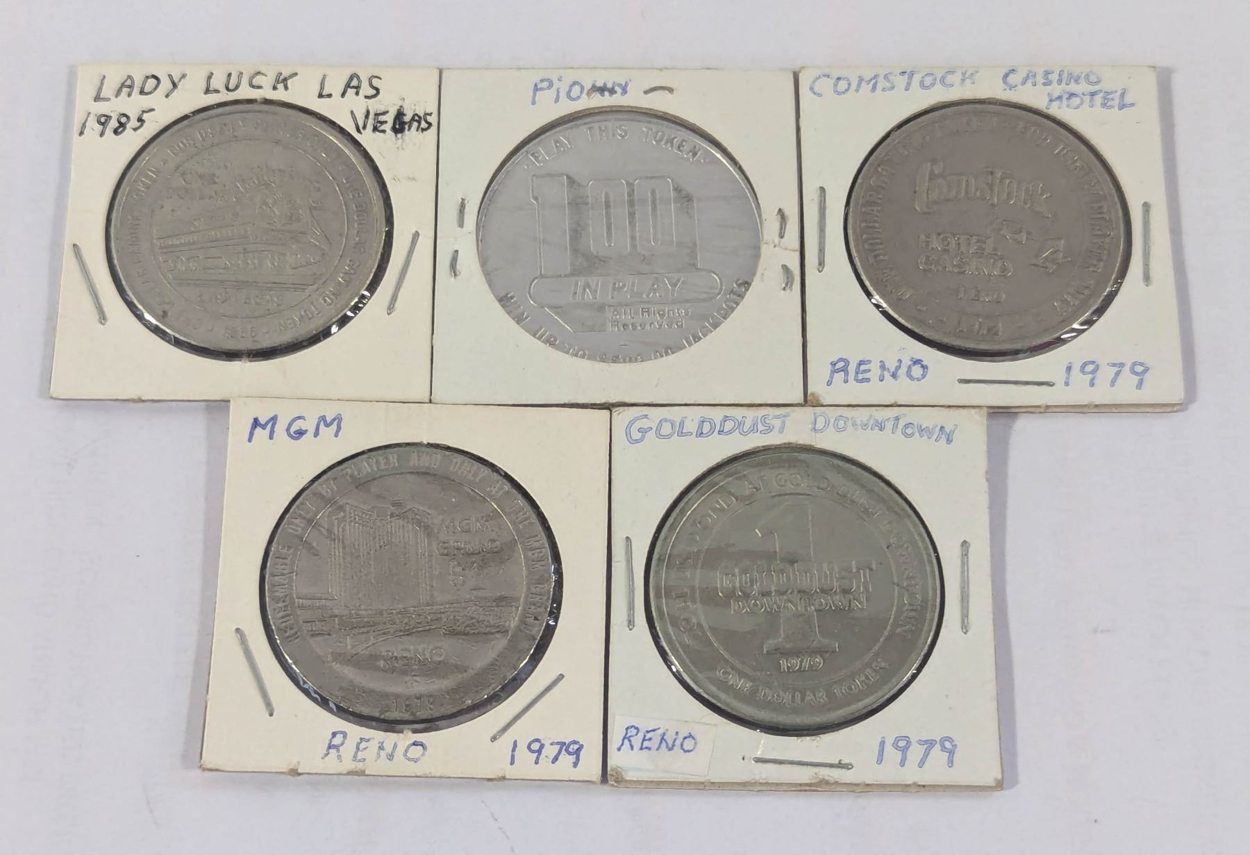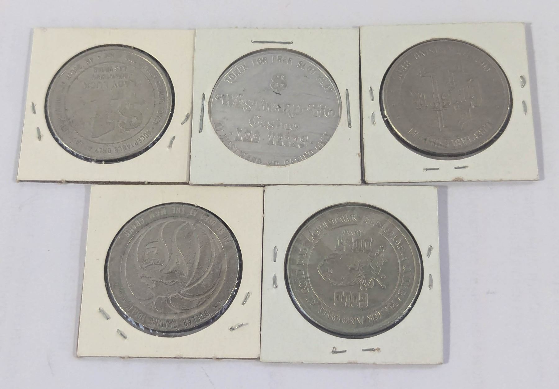 x5 VINTAGE VARIOUS LAS VEGAS CASINO TOKENS ETC.