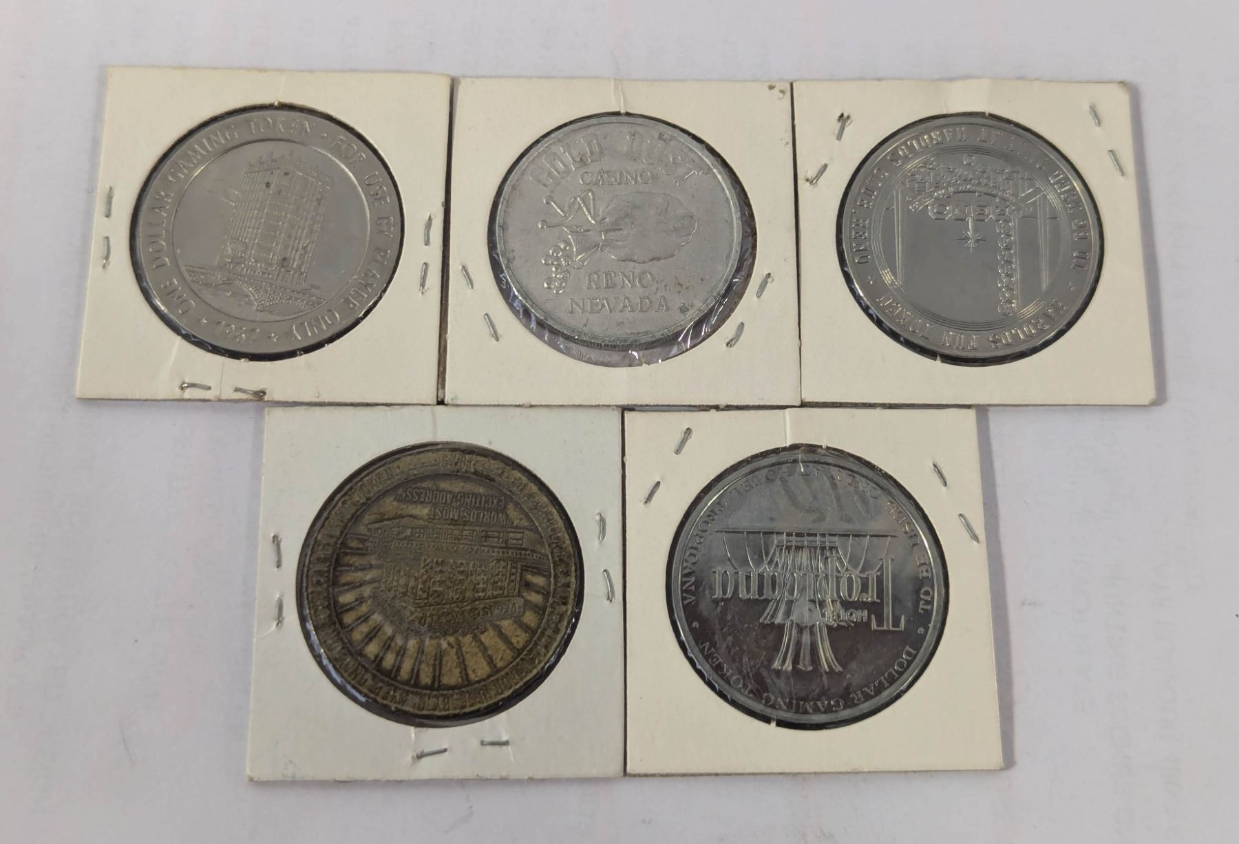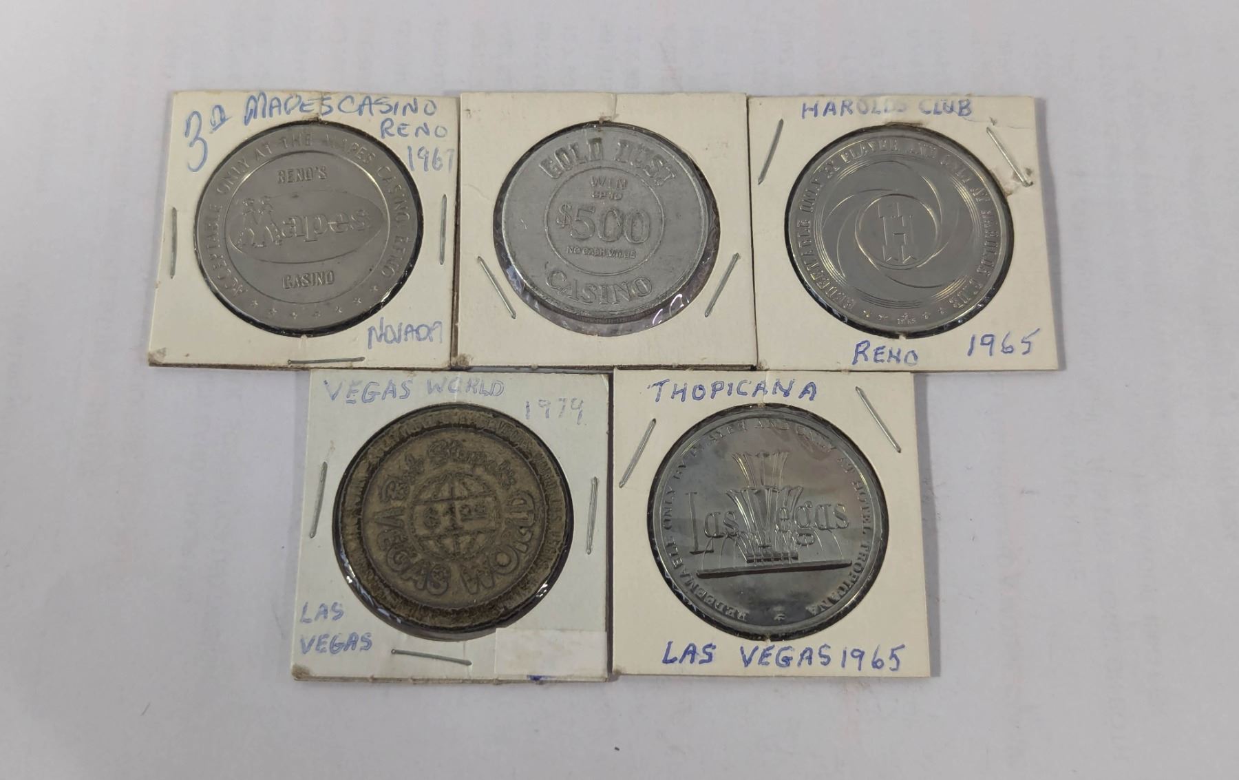 x5 VINTAGE VARIOUS LAS VEGAS CASINO TOKENS ETC.