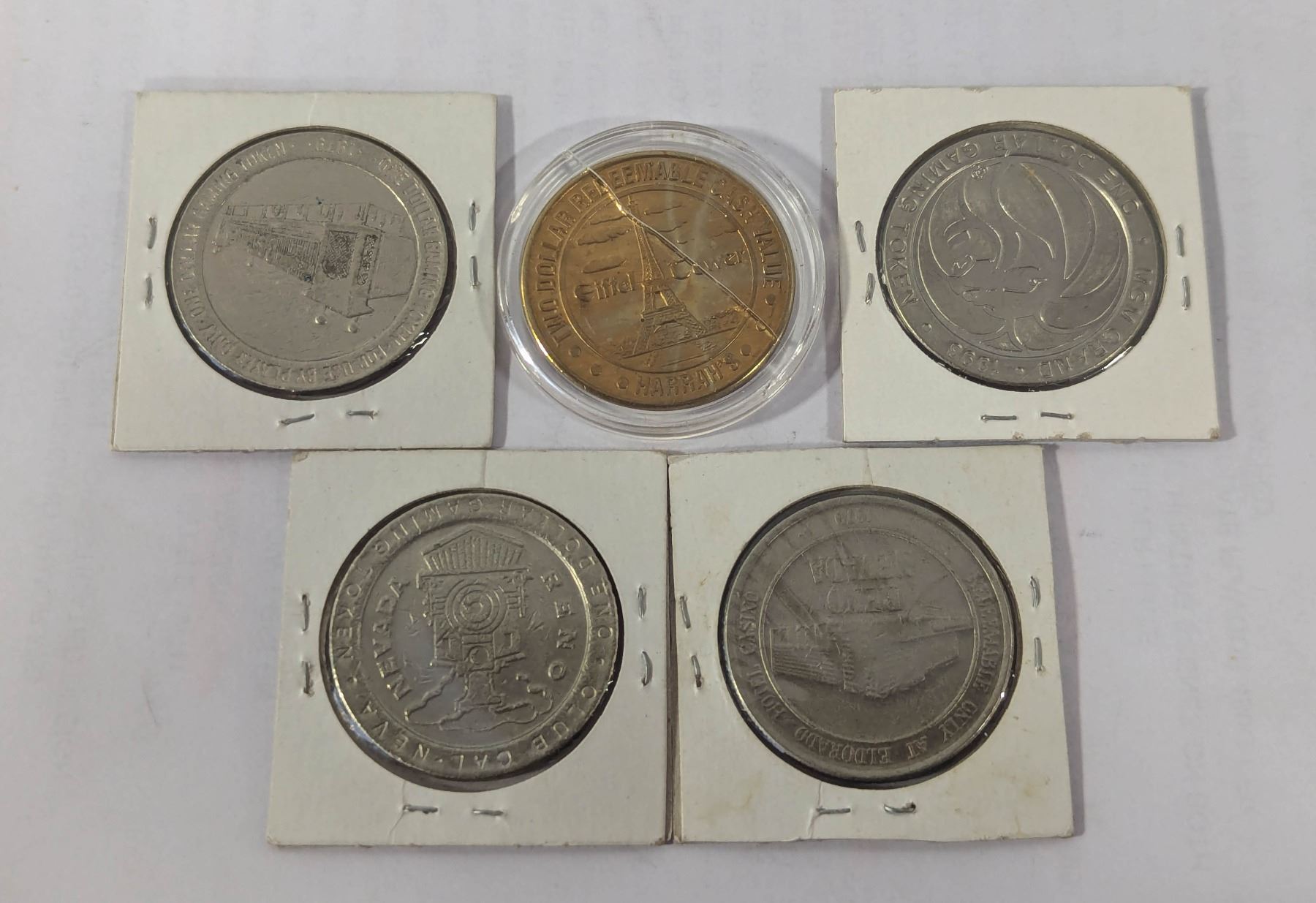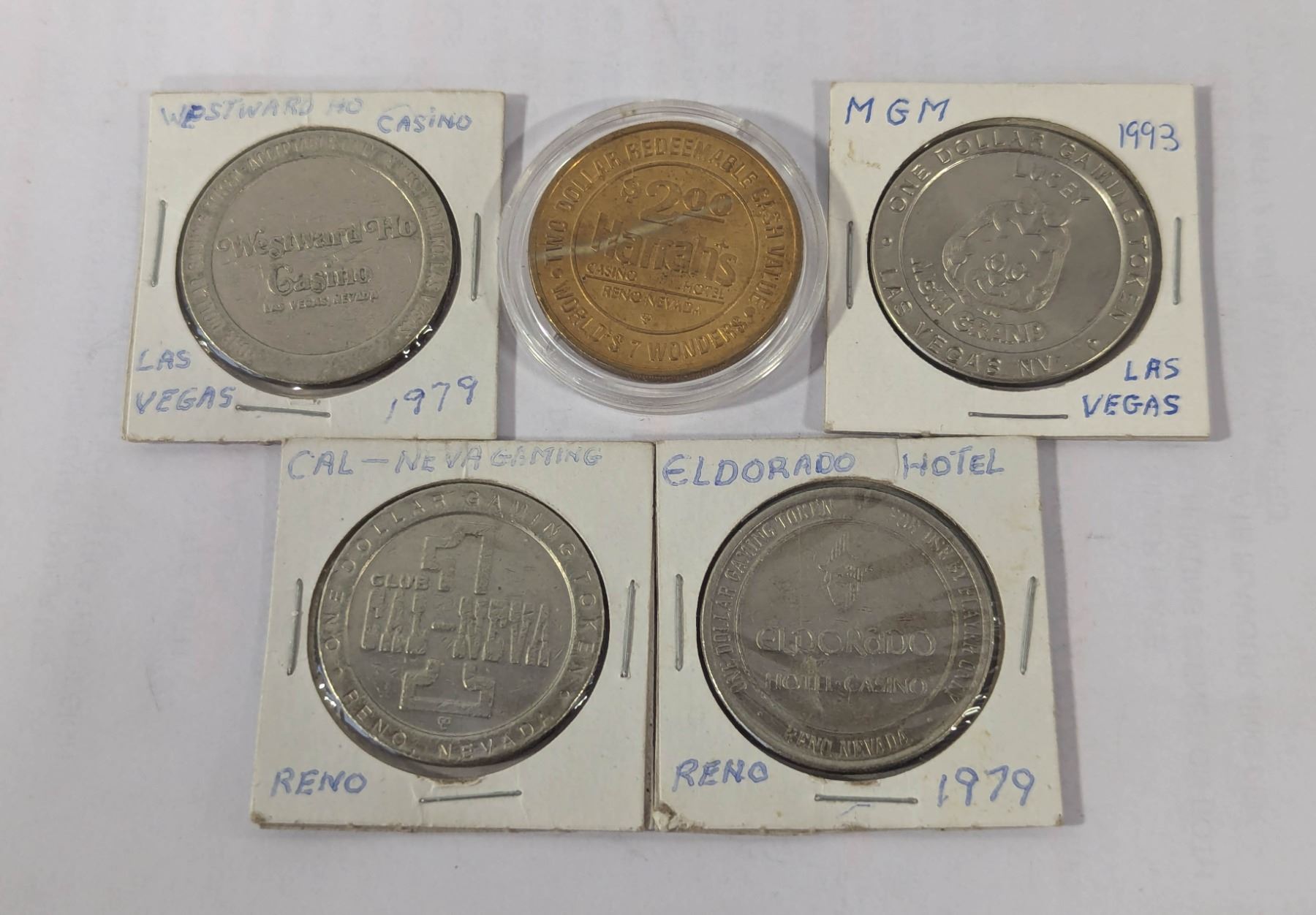 x5 VINTAGE VARIOUS LAS VEGAS CASINO TOKENS ETC.