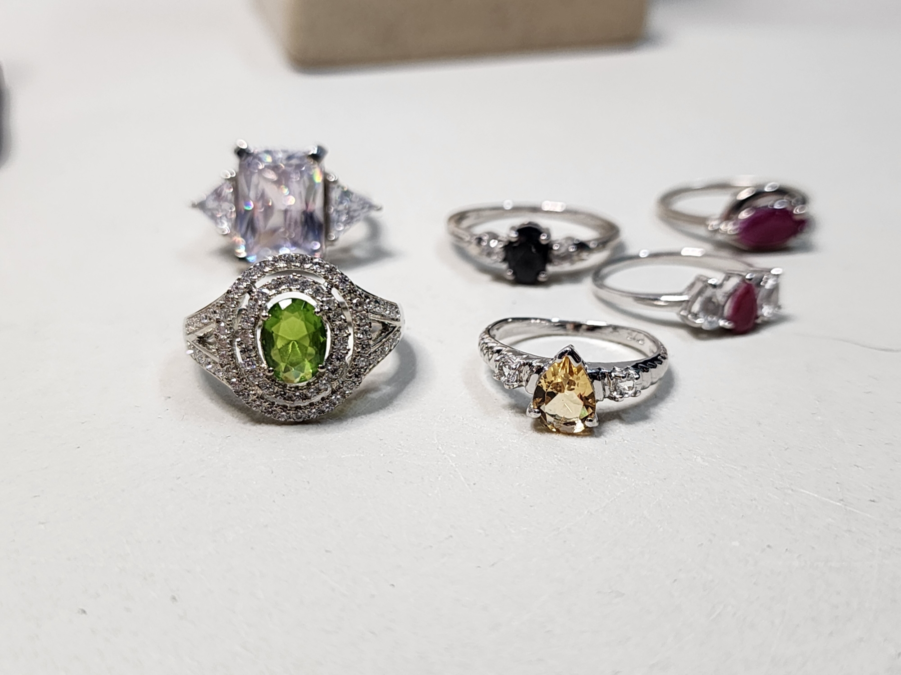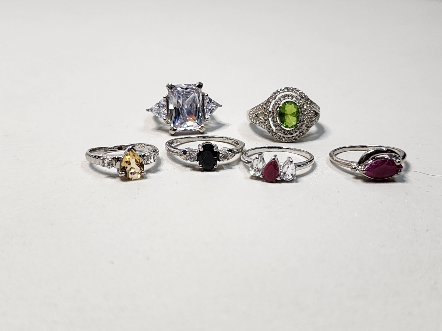 x6 Gorgeous Sterling Silver Rings w/ Assorted Colored Stones TW: 18.5g