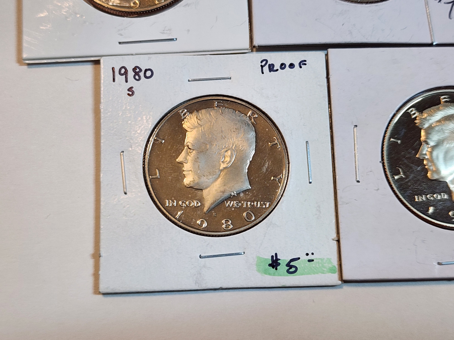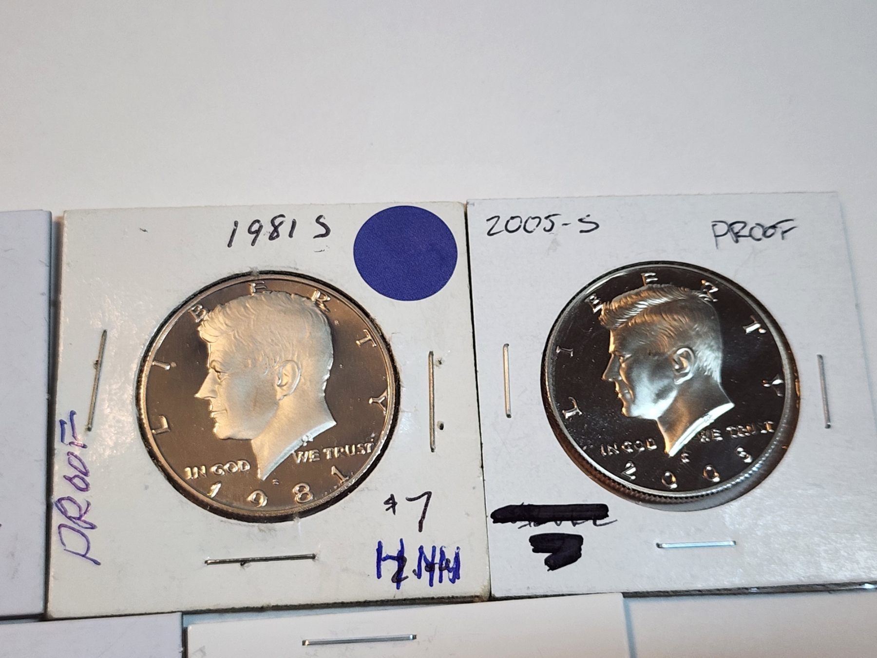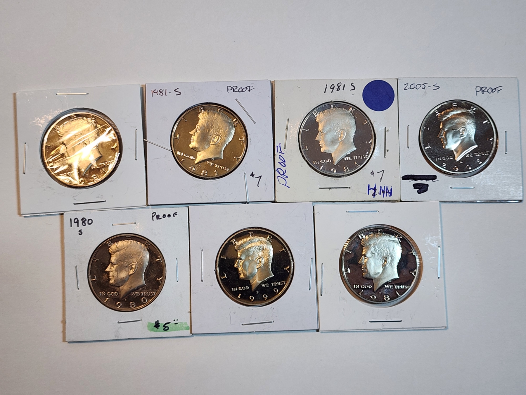 x7 Assorted Years Clad Kennedy Half Dollars - Including Proofs FV: $3.50