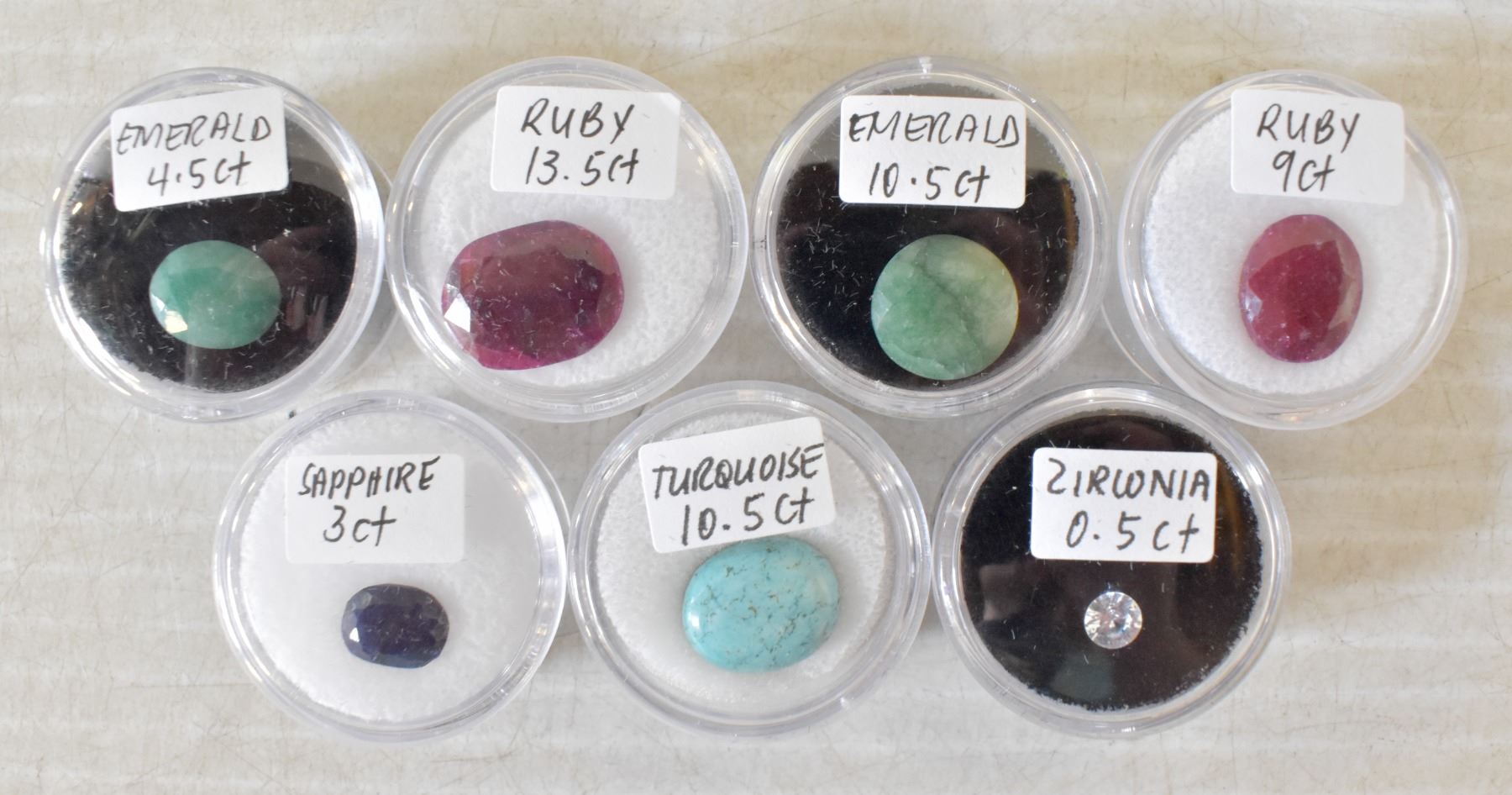 x7 GENUINE RUBY, EMERALD, SAPPHIRE, TURQUOISE GEMS