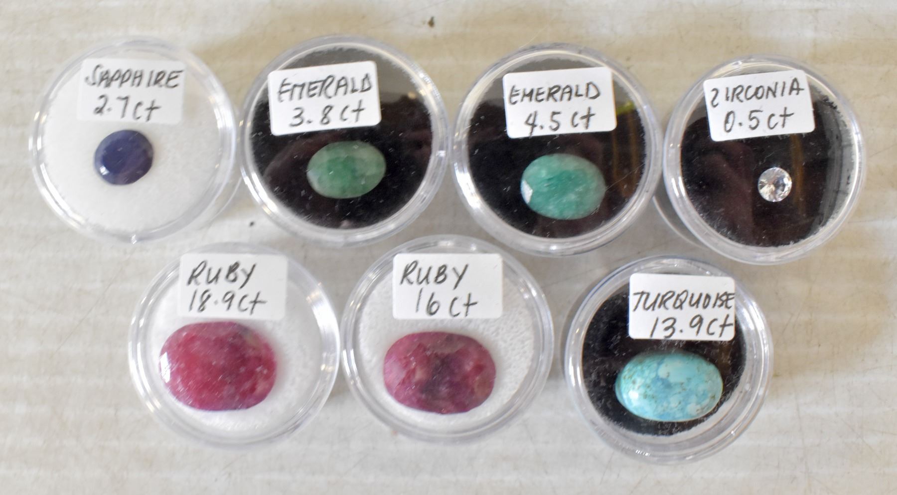 x7 GENUINE RUBY, EMERALD, SAPPHIRE, TURQUOISE GEMS