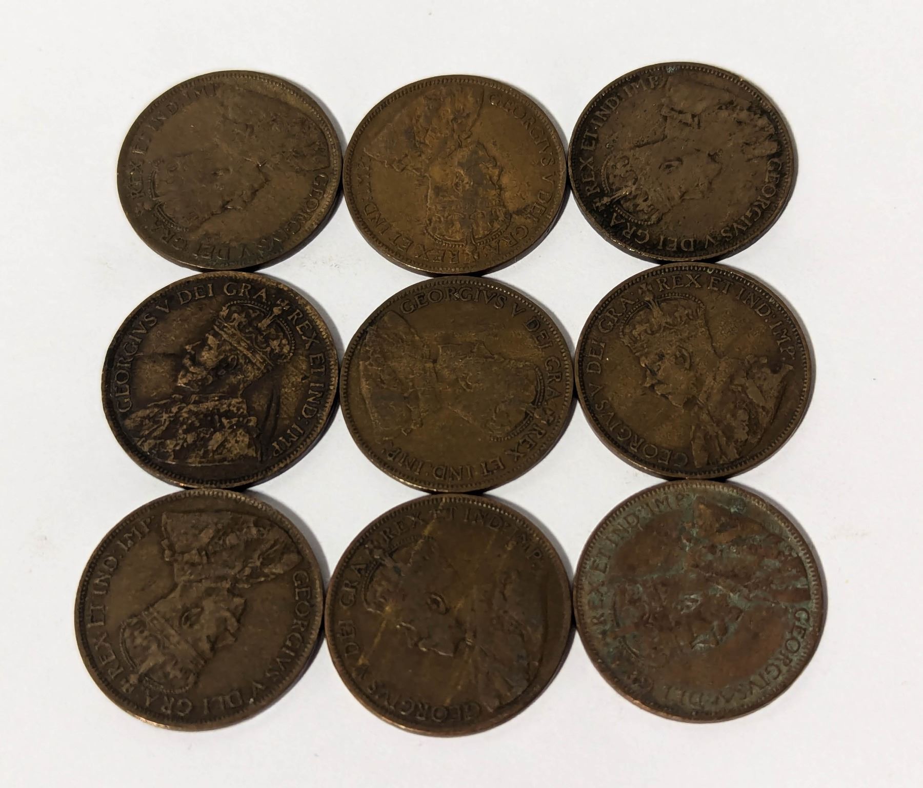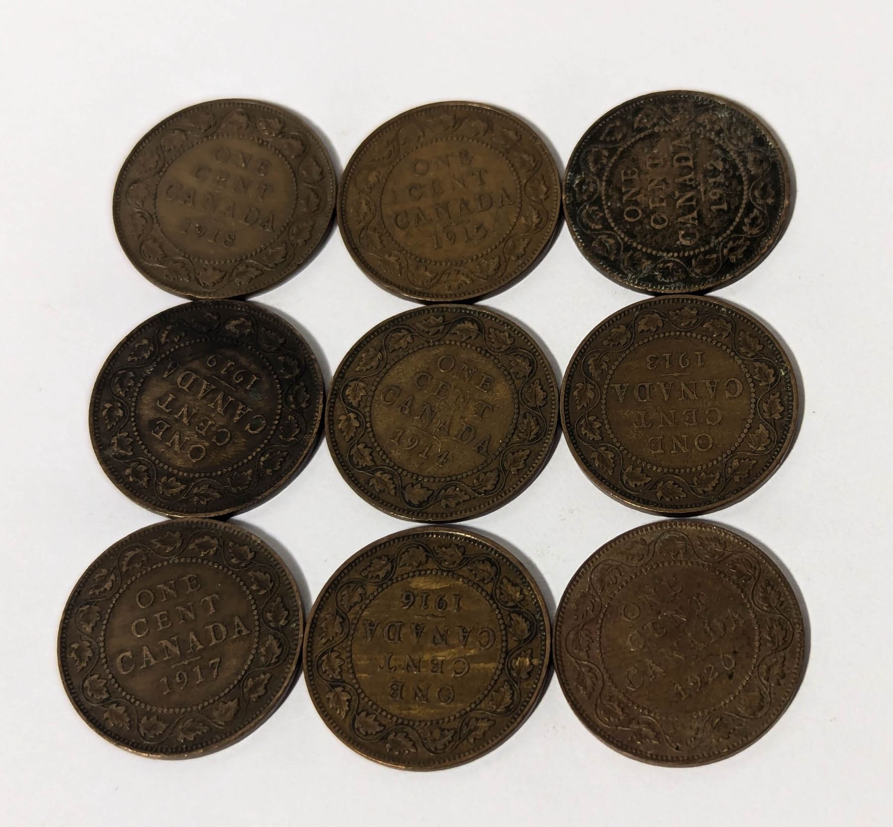 x9 VARIOUS DATES & GRADES CANADA LARGE 1c COINS