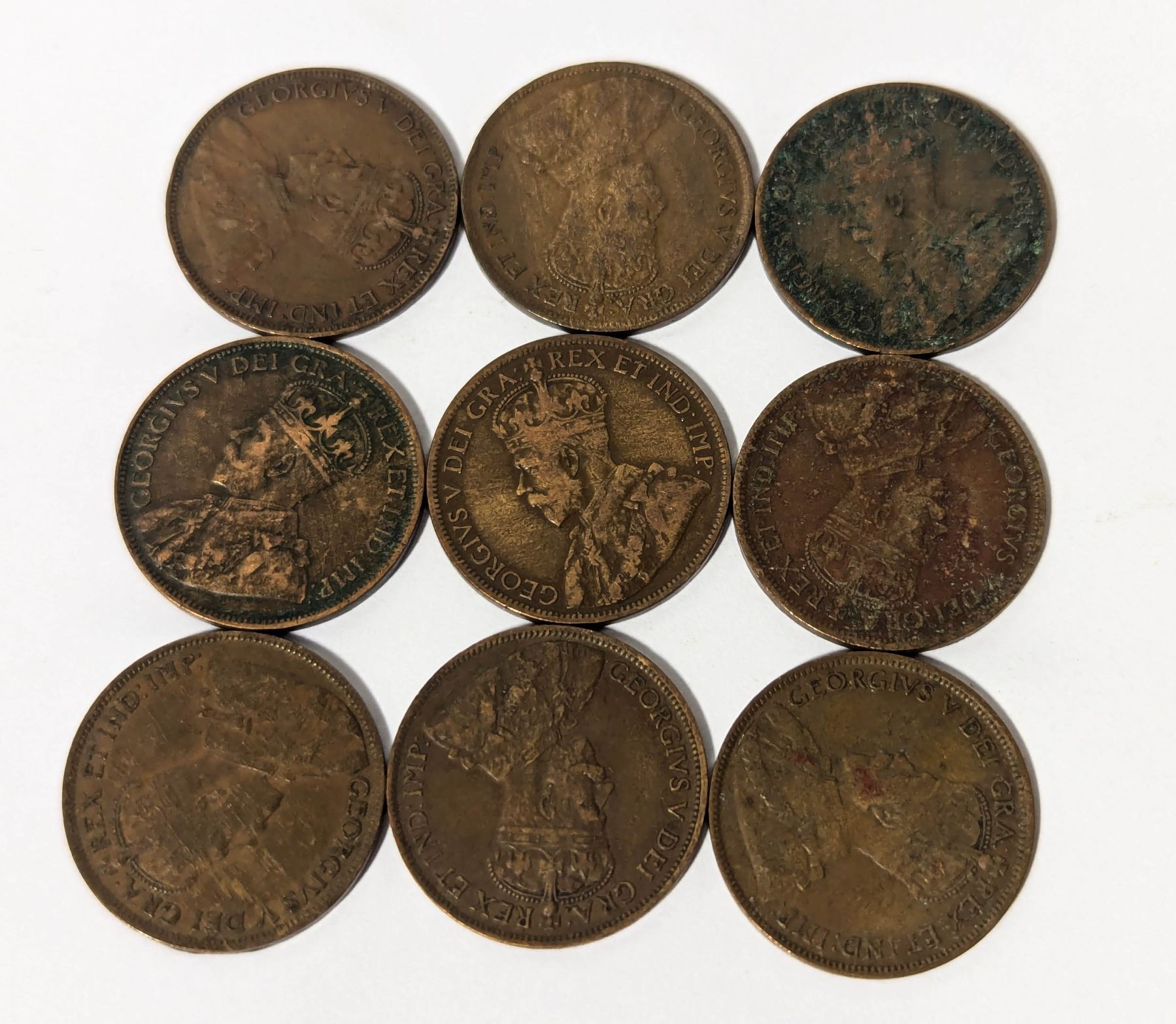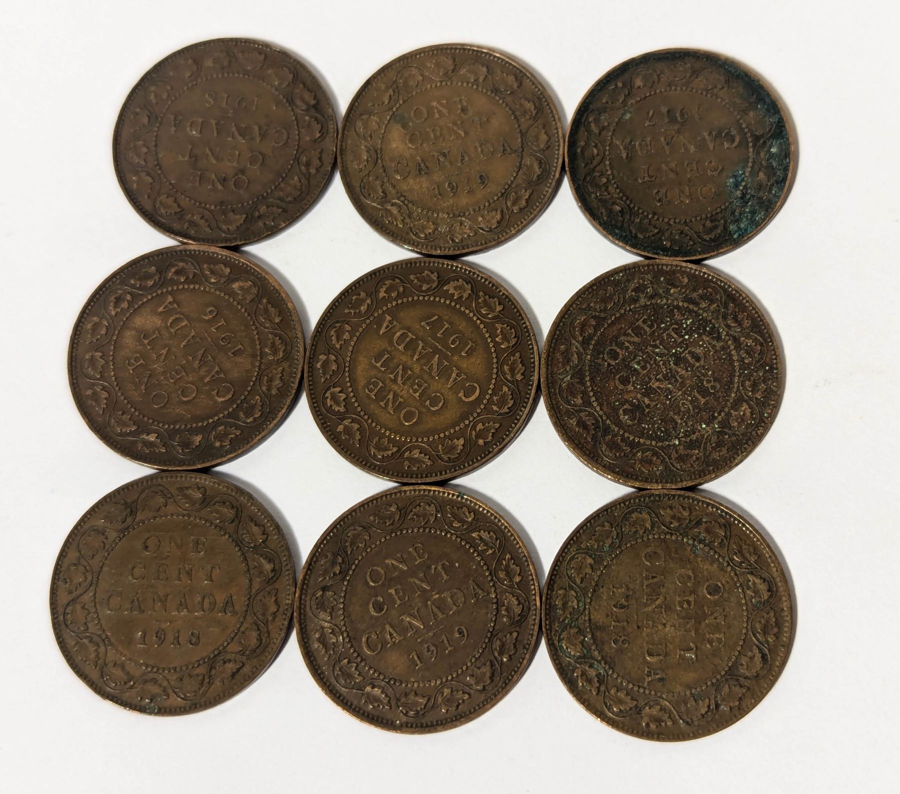 x9 VARIOUS DATES & GRADES CANADA LARGE 1c COINS